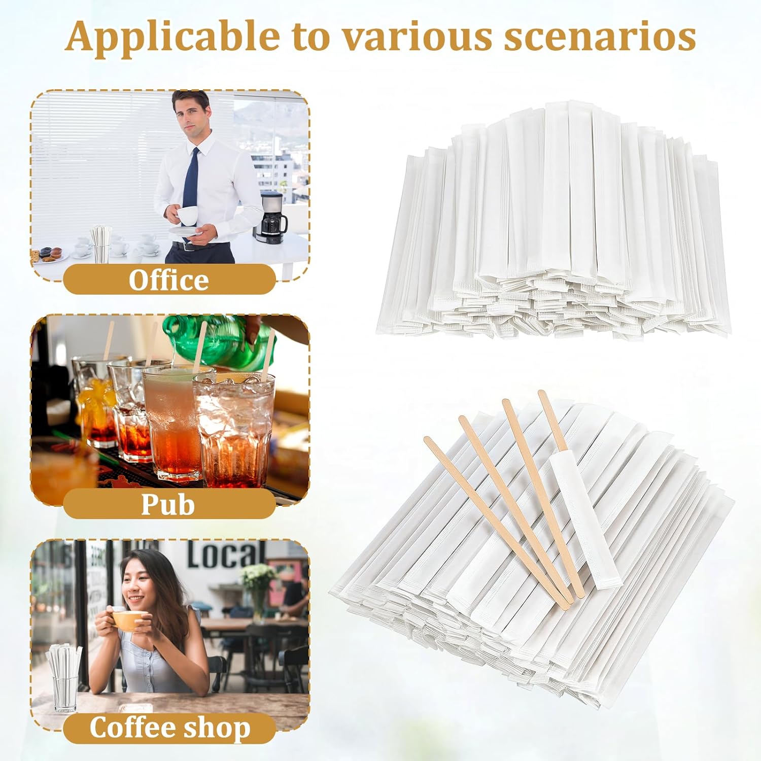 2000 Pcs Individually Wrapped Wooden Coffee Stirrers 5.5 Inch Disposable Wood Stir Sticks, Round End coffee stirrer for Cocktail, and Hot Drinks