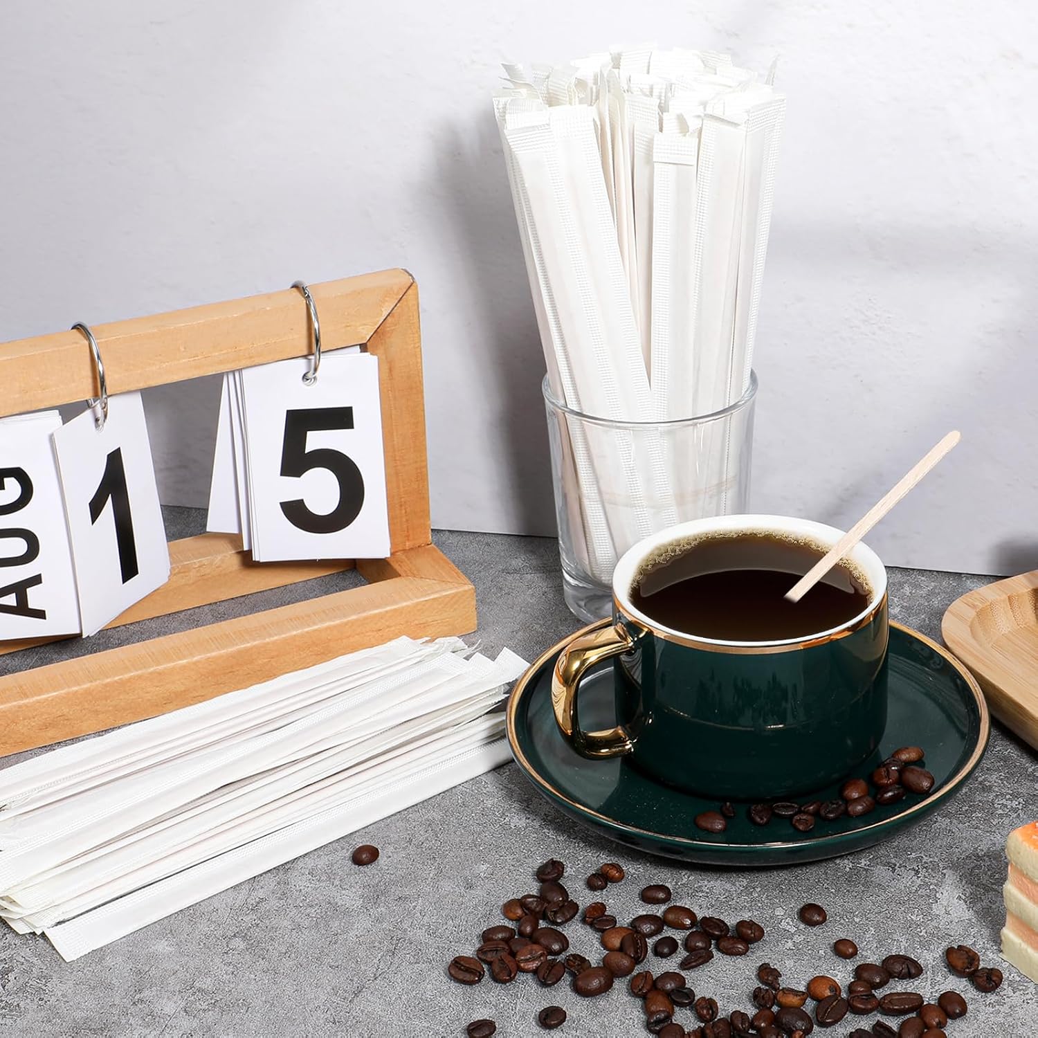• Premium 2000-Pack Birch Wood Stir Sticks: This bulk set provides an abundant supply of 2000 high-quality, disposable coffee stir sticks - enough for daily use in cafes, offices, or events. The natural birch wood material ensures durability without affecting beverage flavors, making it ideal for frequent use in busy establishments.