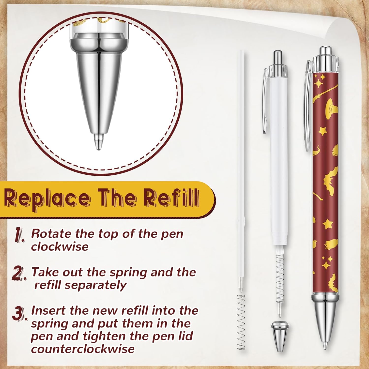 24 Pcs Halloween Party Gift Pens Witch Wizard Favors Castle Ballpoint Pens Wizard Party Supplies Halloween Witch Birthday Decorations for Home Office Game Prizes Gift Bag Fillers
