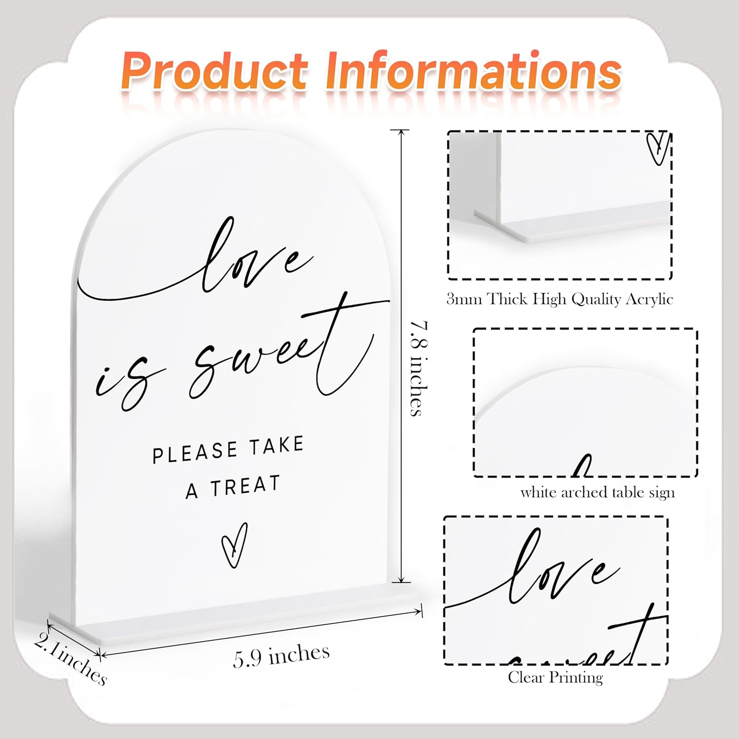 Love Is Sweet Sign for Dessert Table, White Arch Acrylic Wedding Sign, Wedding Reception Decorations, Bridal Shower Decor, Engagement Decor, Centerpiece Table Decorations Party for Bride and Groom-1