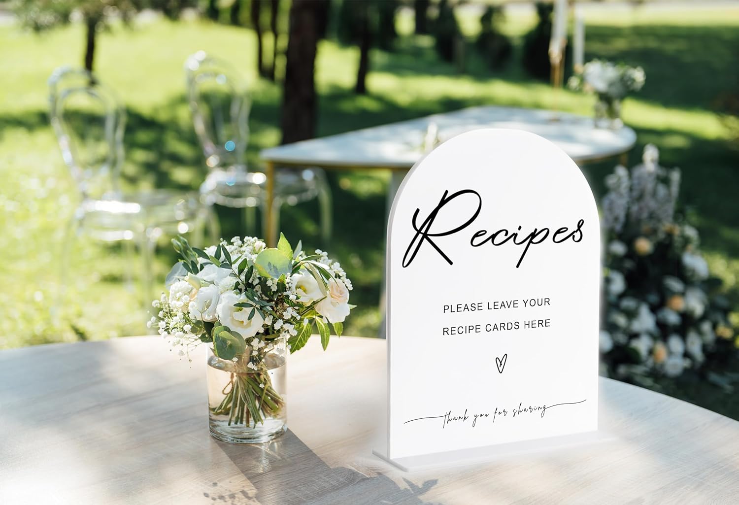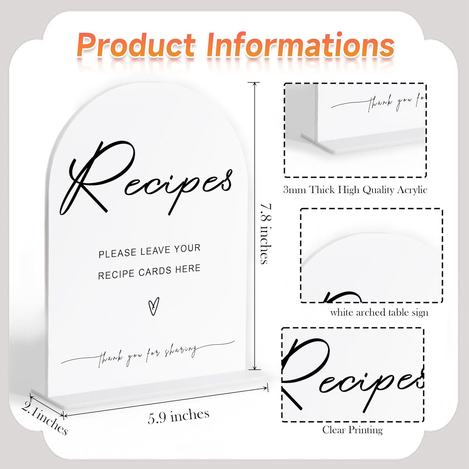 Leave Your Recipe Card Sign, White Arch Acrylic Wedding Sign, Recipe Cards for Bridal Shower, Bridal Shower Decor, Wedding Reception Decorations, Centerpiece Table Decorations Party for Bride-8