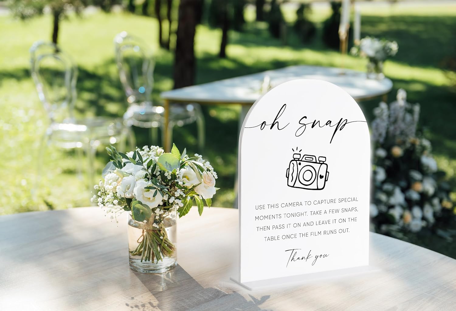 Disposable Cameras for Weddings Sign, White Arch Acrylic Sign, Wedding Reception Decorations, Bridal Shower Decor, Engagement Party Decor, Centerpiece Table Decorations Party for Bride and Groom-23