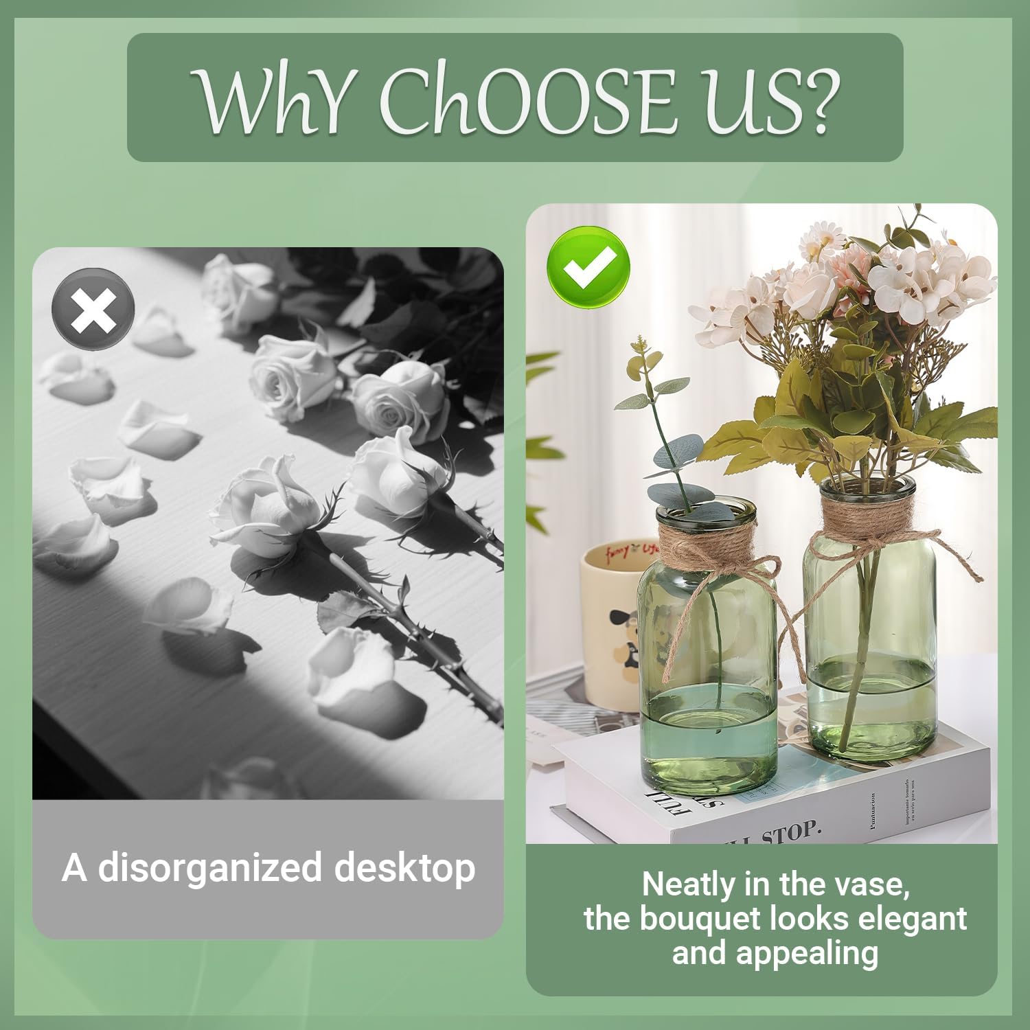 • Versatile for Special Occasions: Beyond daily use, these vases double as vintage vases for flowers, adding charm to engagement decorations, weddings, or anniversary parties. Their elegant design adapts to various themes, making them a versatile choice for both casual and formal celebrations