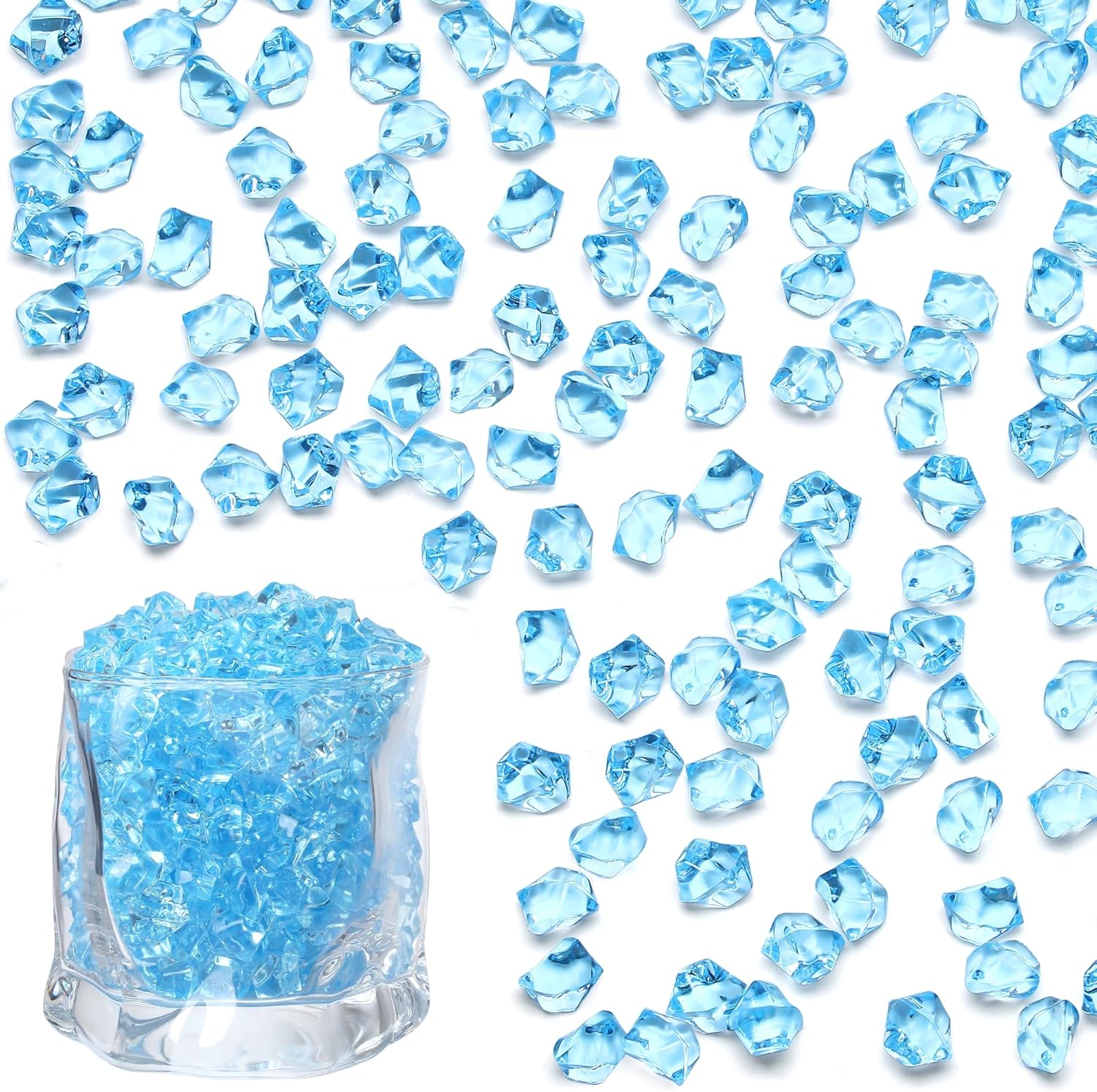 • Quality Sky Blue Gems:Crafted from acrylic, these fake ice cubes are lightweight, odorless, and polished with a sparkling finish. They sink in water, making them great for fish tank decorations, candle holders, display cabinets, and event props. The bright sky blue shade enhances any modern, rustic, or coastal décor