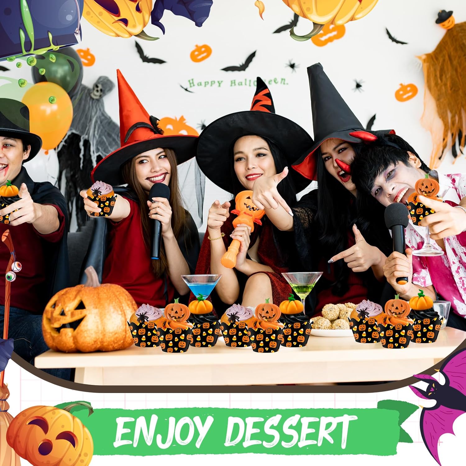 Domensi 100 Pcs Halloween Pumpkin Cupcake Wrappers Rustic Cupcake Liners Pumpkin Candy Corn Baking Cups Baking Liners for Wedding Bridal Baby Shower Birthday Halloween Party Supplies Dessert Decors