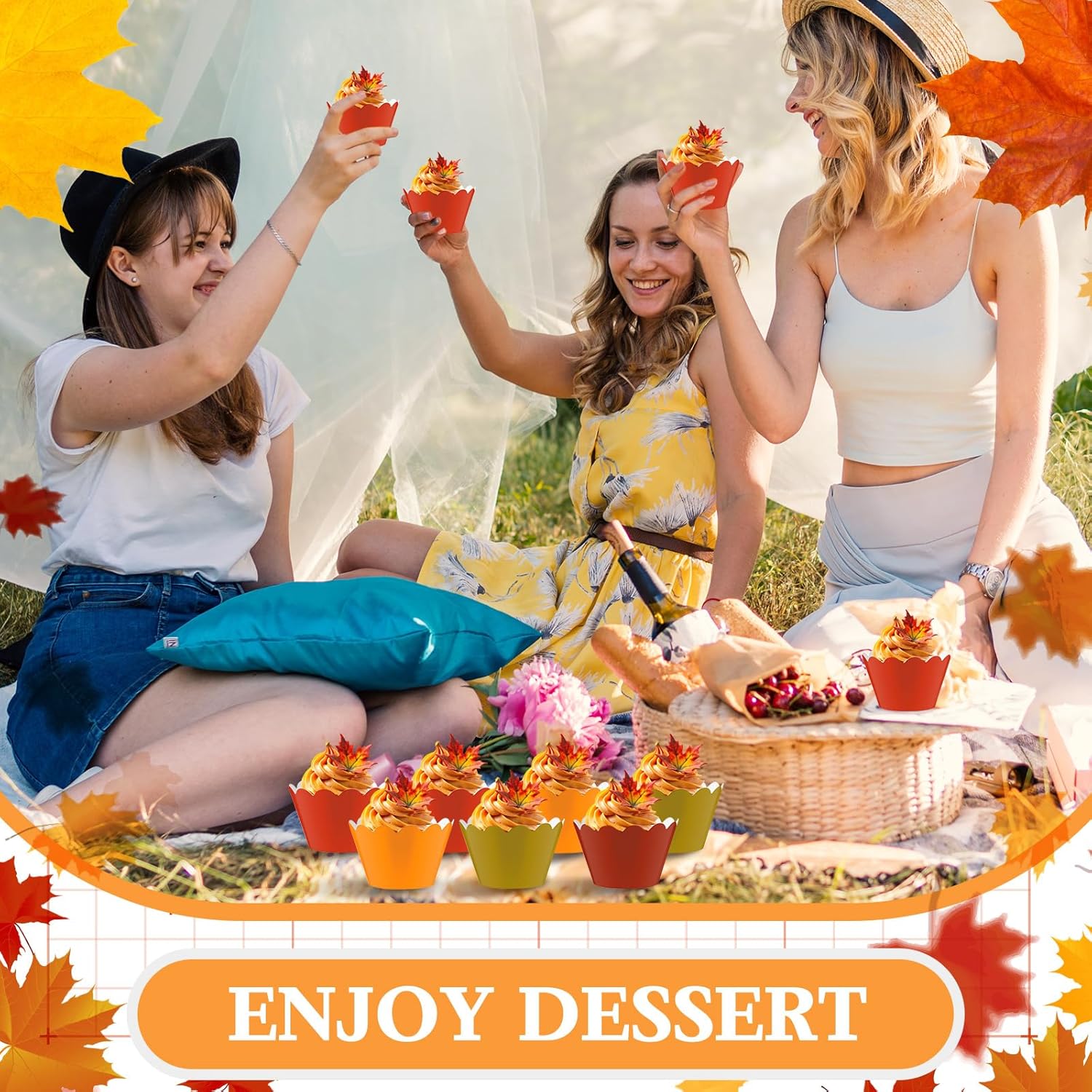 • Wide Range of Applications: these baking cups reflect fall colors design, making them an ideal decoration piece for various events; Whether it's a fall, Thanksgiving, wedding, bridal shower, baby shower, birthday, outdoor themed party, BBQ, holiday event, anniversaries, graduation or a party of any kind, their elegant design creates a warm and inviting atmosphere