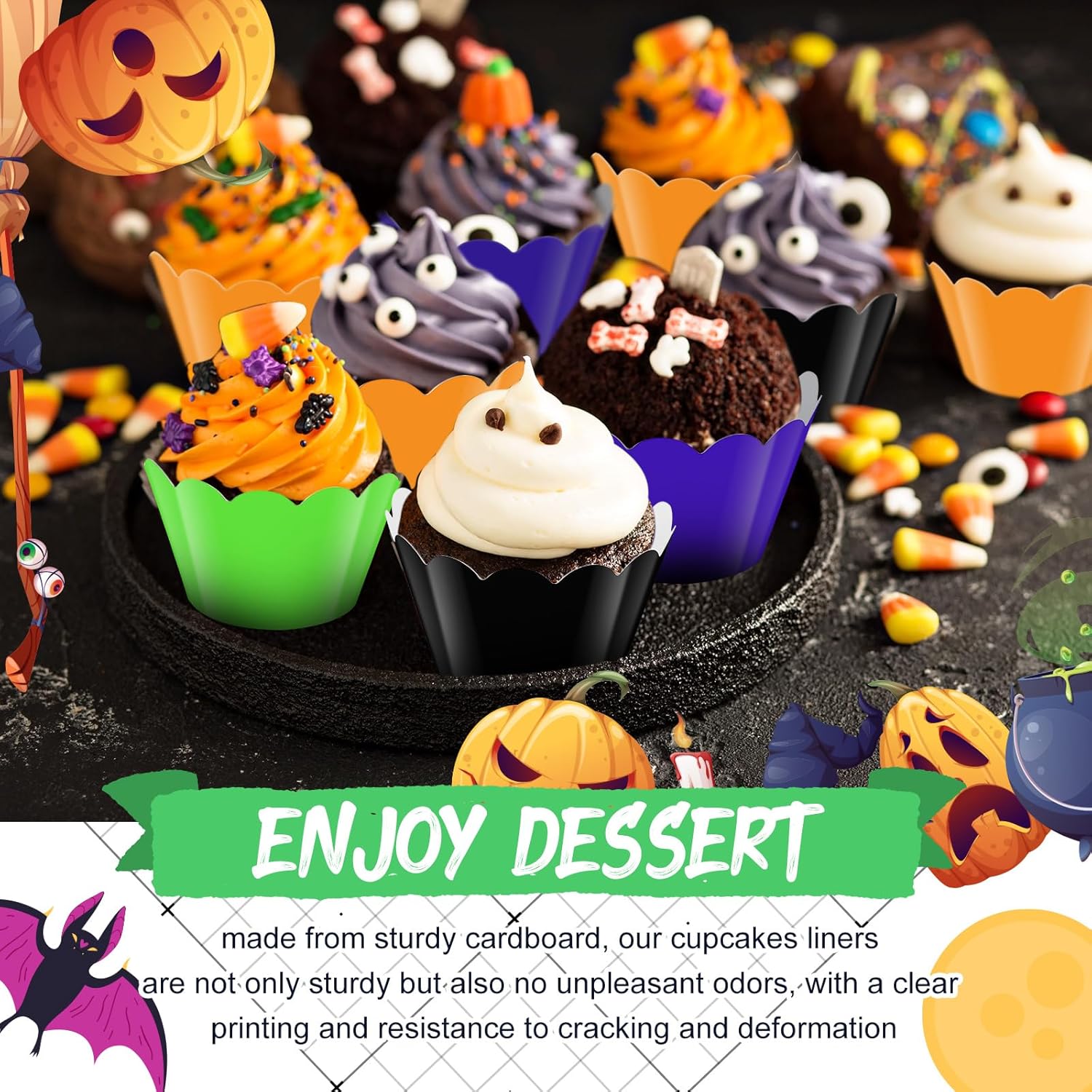 • Wide packaging and attractive design: This pack of 100 cupcake wrappers comes in 4 colors and features a Halloween themed color scheme. These wrappers combine functionality with aesthetic appeal, meeting your daily baking needs while adding a touch of sophistication to your cupcake presentation