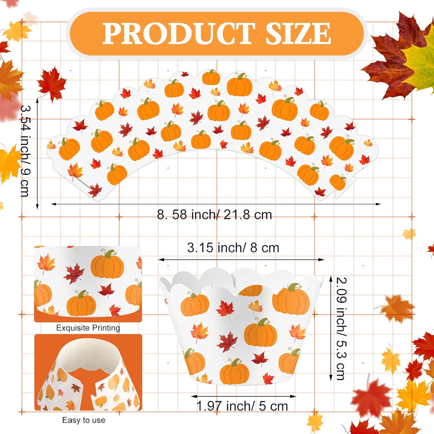 • Wide Range of Applications: these baking cups reflect an aesthetic maple leaf and pumpkin design, making them an ideal decoration piece for various events; Whether it's a wedding, bridal shower, baby shower, birthday, outdoor themed party, BBQ, holiday event, anniversaries, graduation or a party of any kind, their elegant design creates a warm and inviting atmosphere
