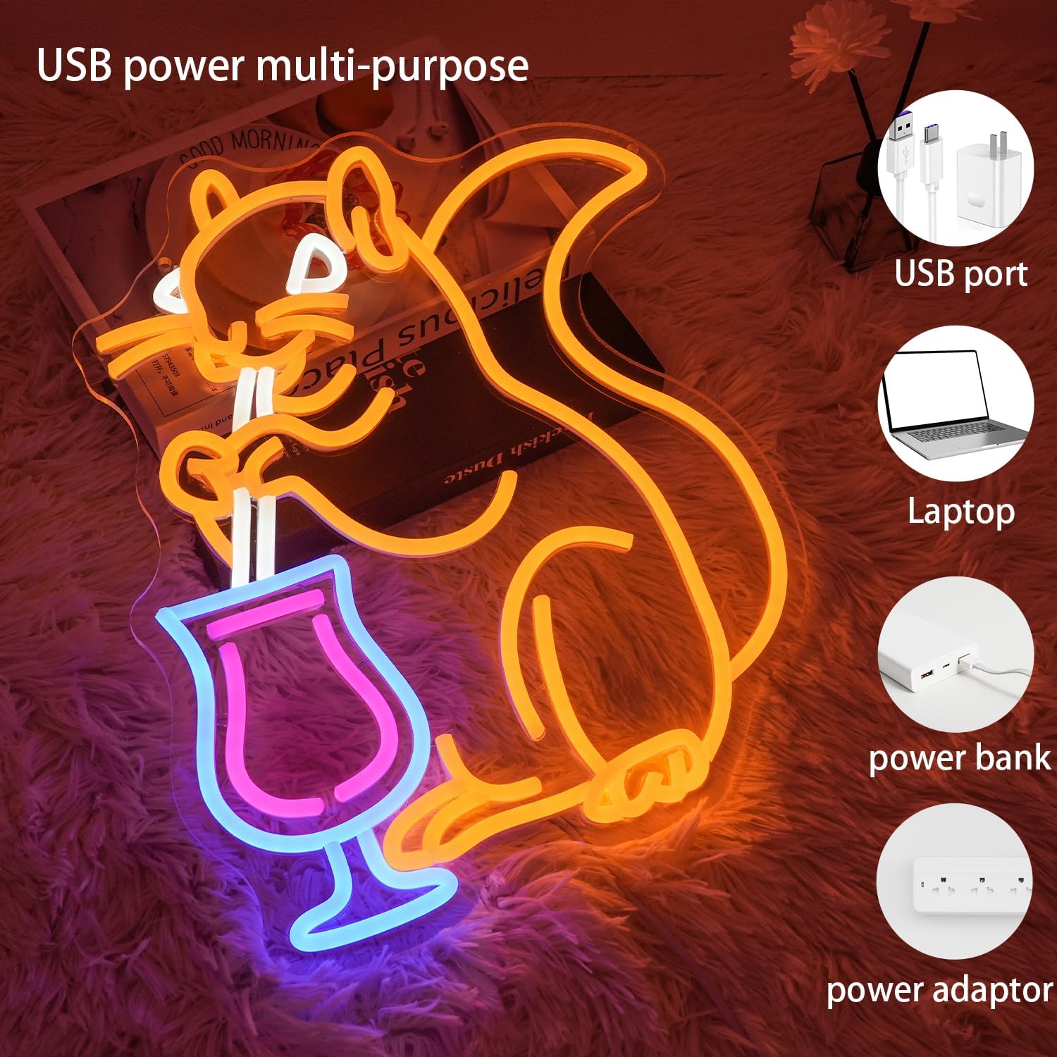 • Squirrel Drinking Cocktail Neon Sign: Cocktail neon light is meticulously crafted with attention to detail, Combined with the orange squirrels and colorfully patterned cocktails pattern,Whether it's your home mini bar, or man cave, neon bar lights can add to a relaxed and cheerful atmosphere, Enjoy your drinking time
