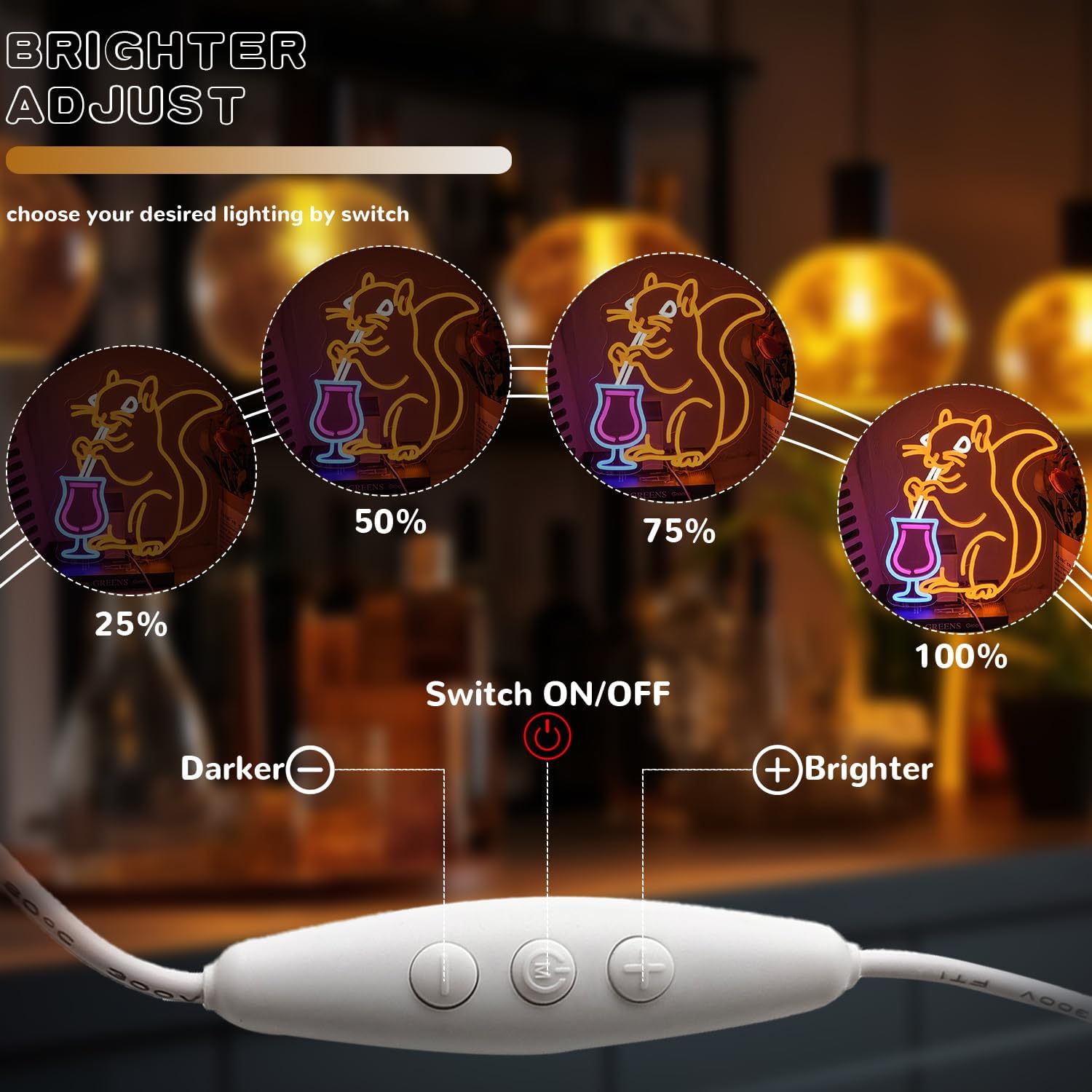 • Dimmable Brightness: Squirrel cocktail neon light for bar Decor measures 15.3 x 12.9 inches,built-in dimmer switch can adjust the brightness,can meeting your different lighting needs, Enhance the atmosphere and decorative artistry
