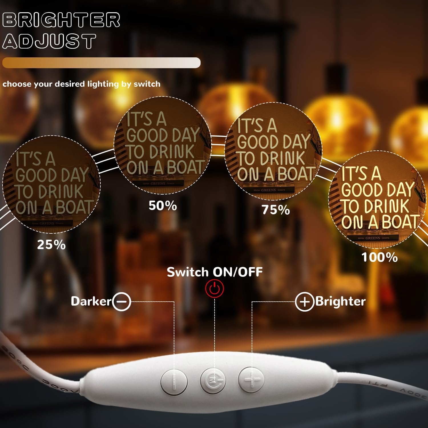 • Unique Design: Warm White Letter neon signs for Bar Cart Decor features the letter "Drink What Makes You Happy", to create a unique visual effect, add a touch of personality to any room