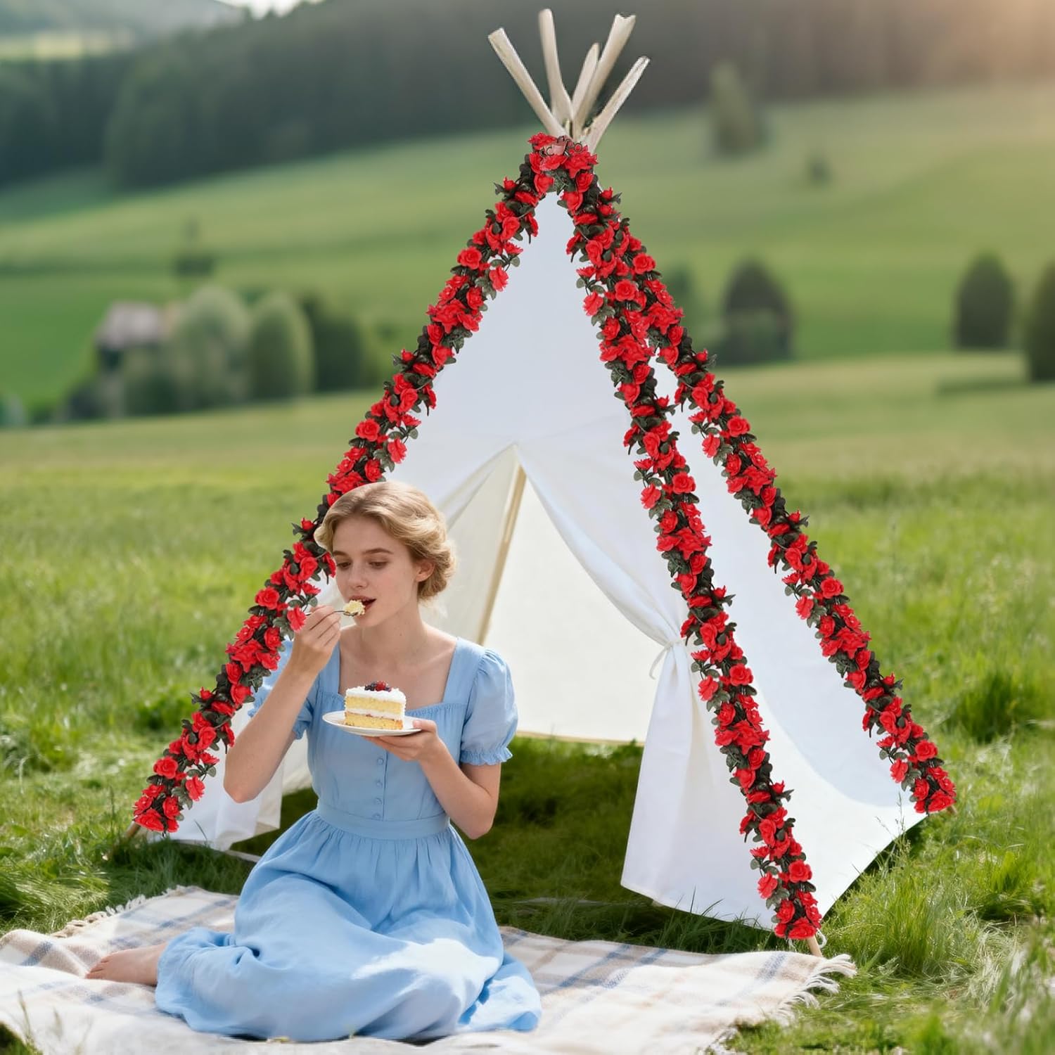 5 Pcs 41FT Flower Garland, Artificial Rose Garland Flowers Plants Fake Flower Hanging Rose Ivy, Birthday Party Valentine's Day Wedding Wall Arch Decor(Red)