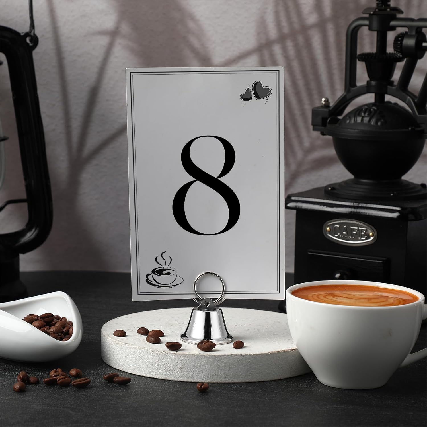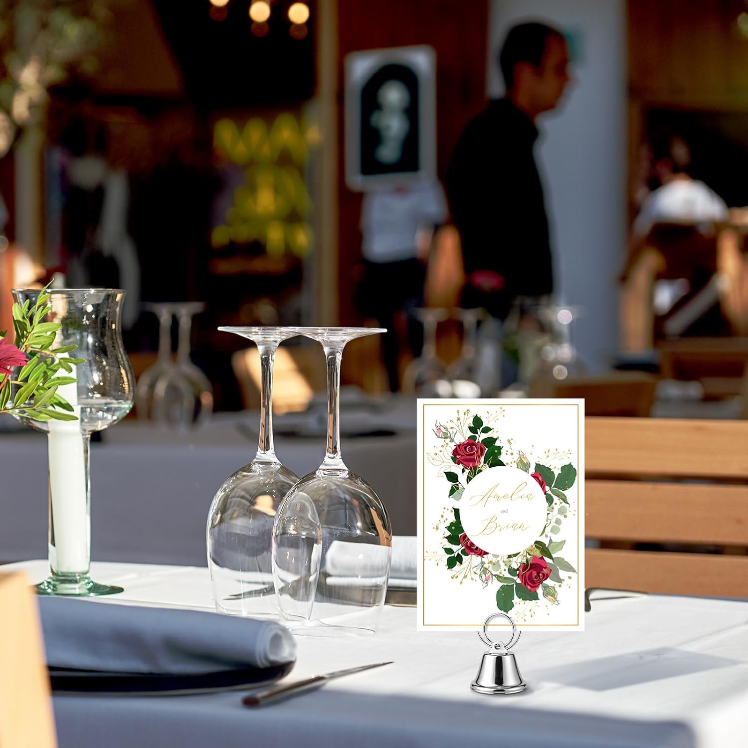 • Suitable Size: Our table number holders are carefully crafted with a size of 1.97 x 1.38 inch/ 5 x 3.5 cm, which will not take up too much desktop space. At the same time, the wedding bells are eye-catching in size, elegant in design, and has a decorative effect, it can be placed with various decorations