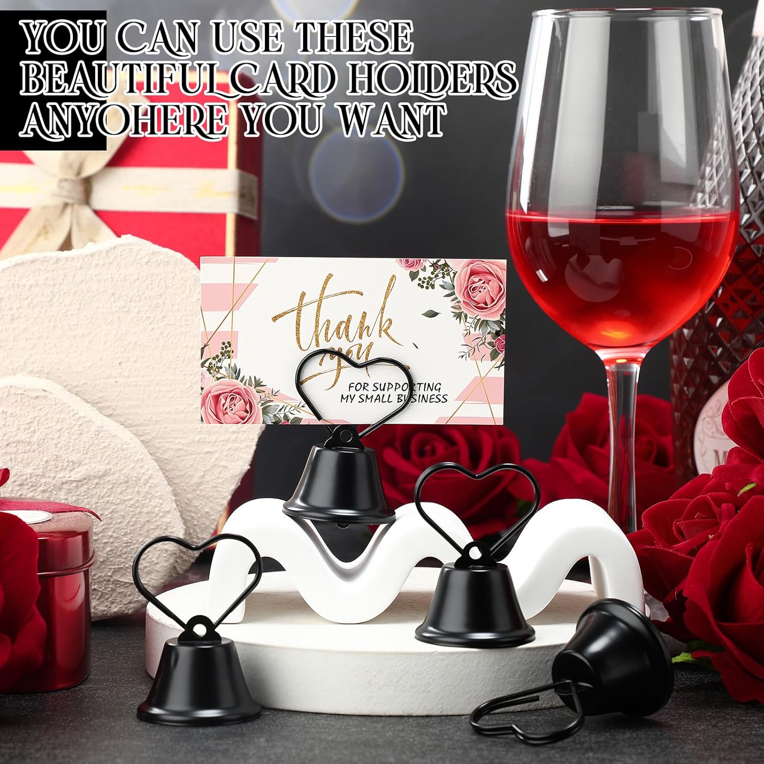 24 Pcs Table Number Holders Place Card Holders for Table 2 Inch Ring Clip Bell Number Holder Metal Picture Holder for Wedding Christmas Restaurant Home Photo Office Memo(Black,Heart)
