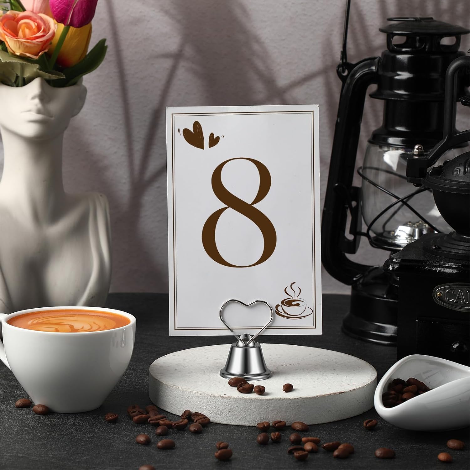 • Unique Bell Design: The bottom of wedding table number holders are in the shape of a bell, which is elegant and eye-catching. In addition, there is a built-in bell, which can make a crisp ringing sound when you shake it gently. It adds a warm and interactive experience to the party or wedding venue, and create a unique sense of ceremony