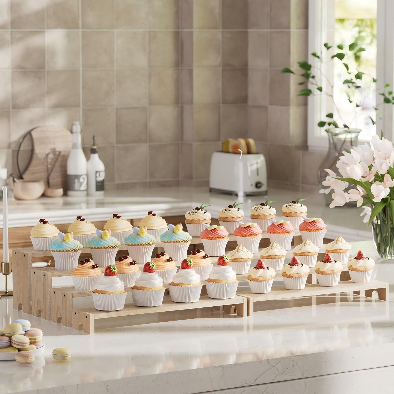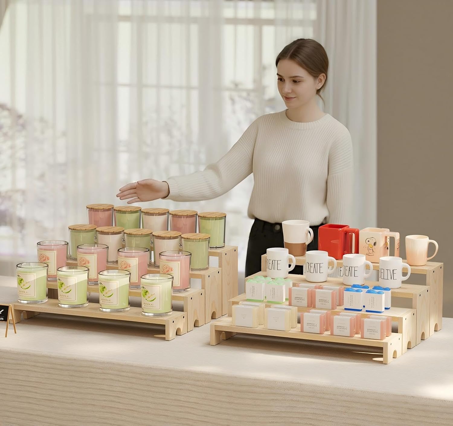 • 【All-Scenario Wooden Tiered Display Riser】Turn every nook into a styled gallery! Curate vanity perfumes, spotlight collectible figures in living rooms, stage succulent gardens in bedrooms, or organize spices/coffee gear in kitchens. Shift instantly from Tiered Spice Rack Organizer to party wooden cupcake stand, craft show display stands, or display shelf for vendors. Nestable 4-tier design adapts apartments to expo halls – becomes portable vendor booth display items for weddings/markets
