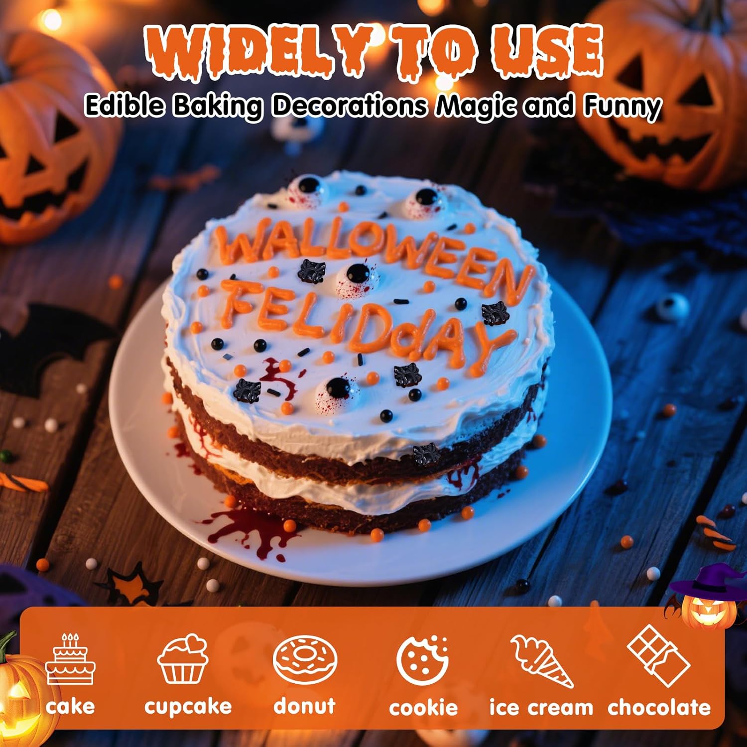 Halloween Terrifying Sprinkles,Candy Bloody Eyeballs,Orange Pearls Black Spider Sprinkle Edible Jimmies Mix,Perfect for Cake Decorations, Baking, Ice Cream, Cookies, Cupcake Topper,Halloween Supplies Children's Party,130g/4.58ounce