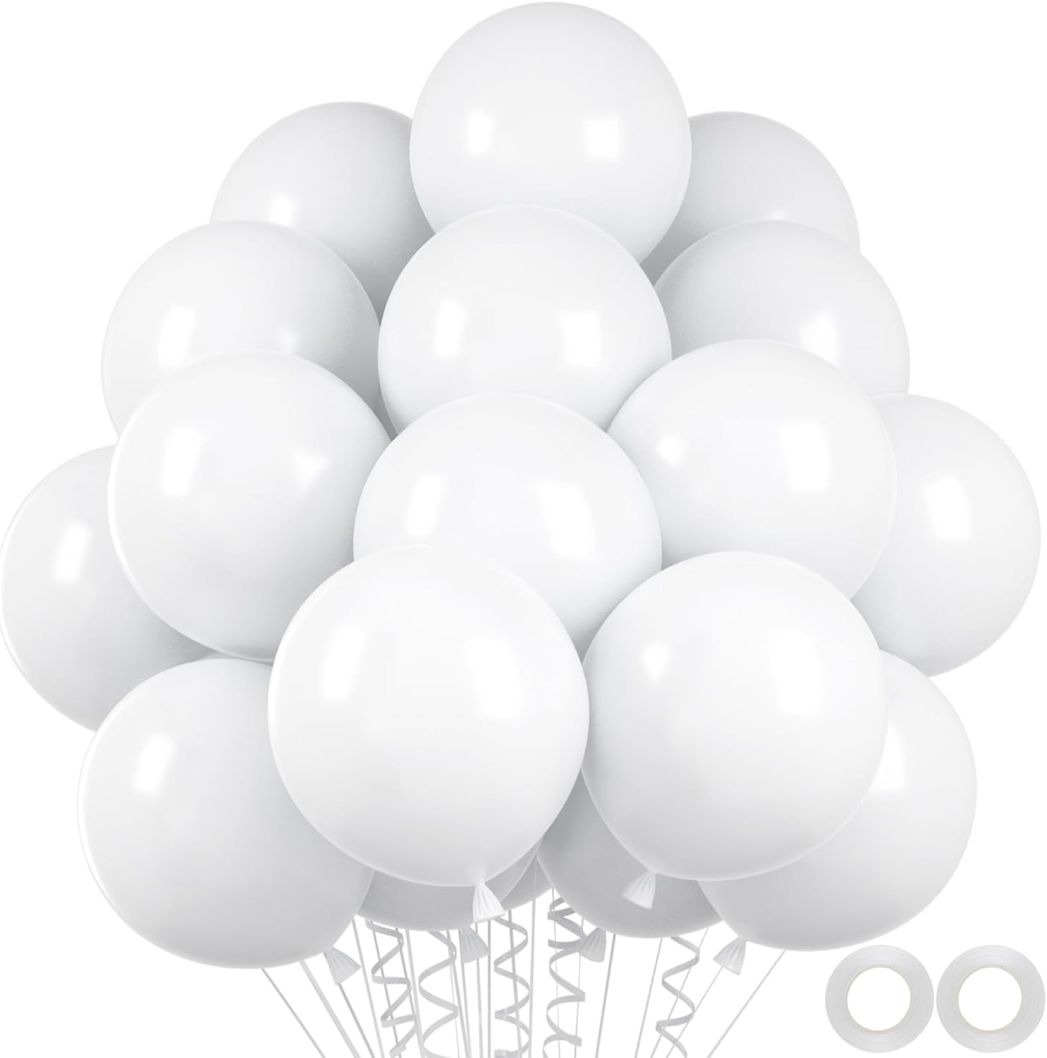 • 【WHAT YOU WILL GET】100pcs 12 inch party balloons in white color +2 rolls of white ribbons