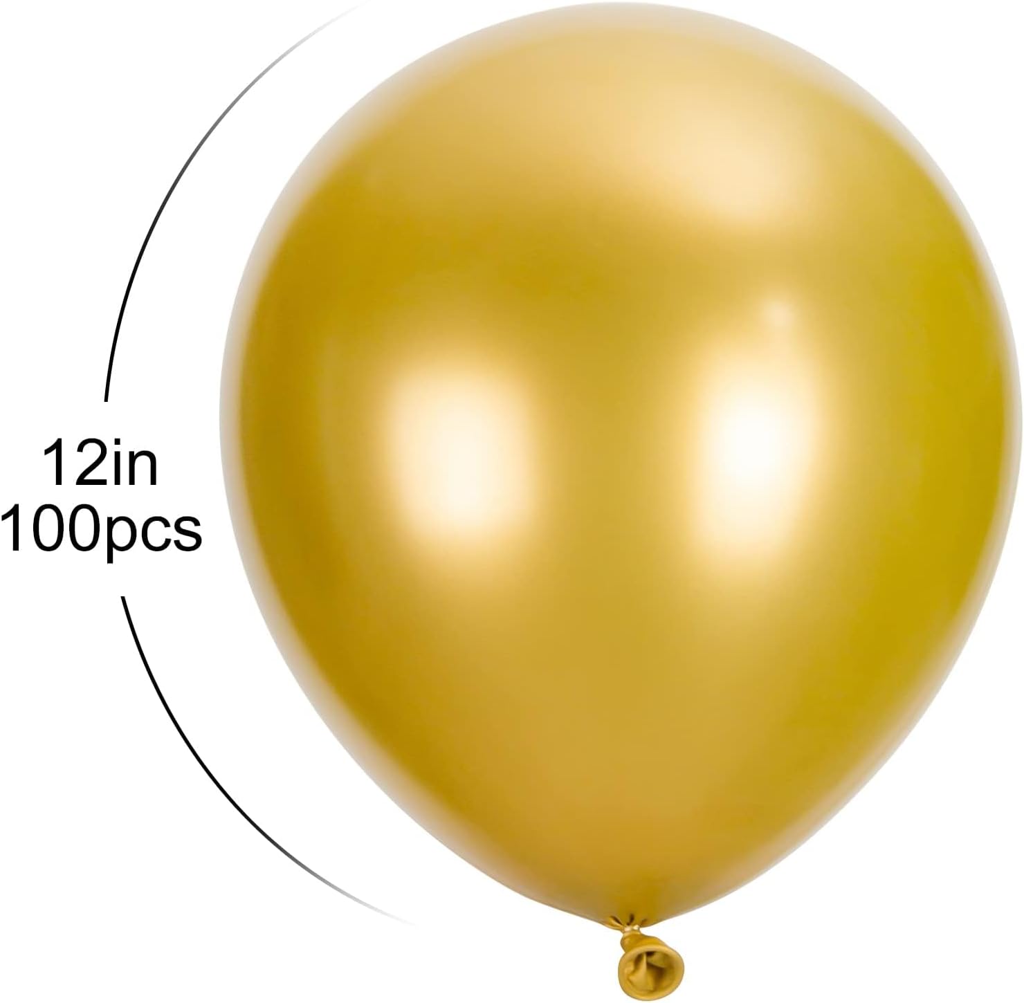 100pcs Metallic Gold Balloons, 12 inch Chrome Gold Latex Party Balloons Helium Quality for Birthday Party, Wedding, New Year Eve Party Decoration (with 66ft Ribbon)