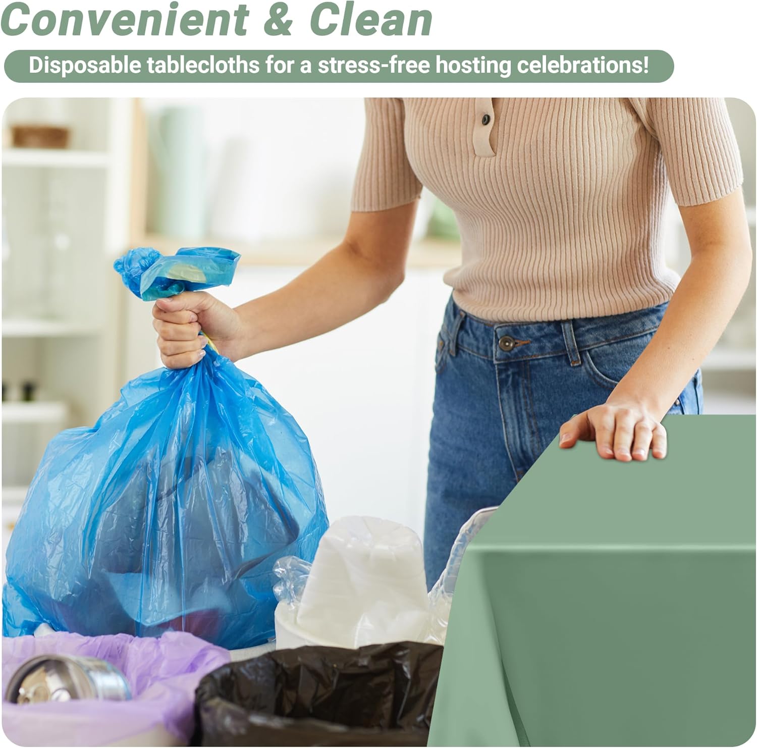 • Effortless Cleanup: Experience worry-free hosting with our disposable plastic tablecloth. This plastic table cloth ensures minimal cleanup after meals, events or graduation decor, letting you focus on your guests and enjoy your event without worrying about the mess!