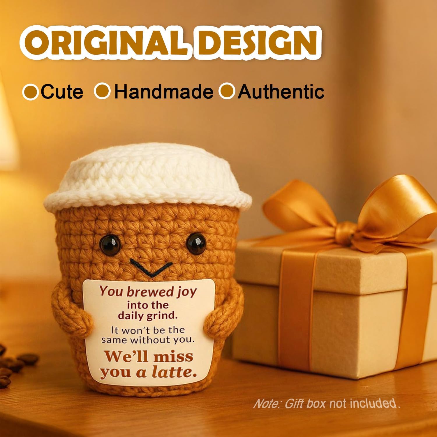 • Coworker Leaving Gift – With the playful message “We’ll miss you a latte,” this crochet coffee cup plush makes a heartfelt coworker leaving gift and a funny way to say goodbye.