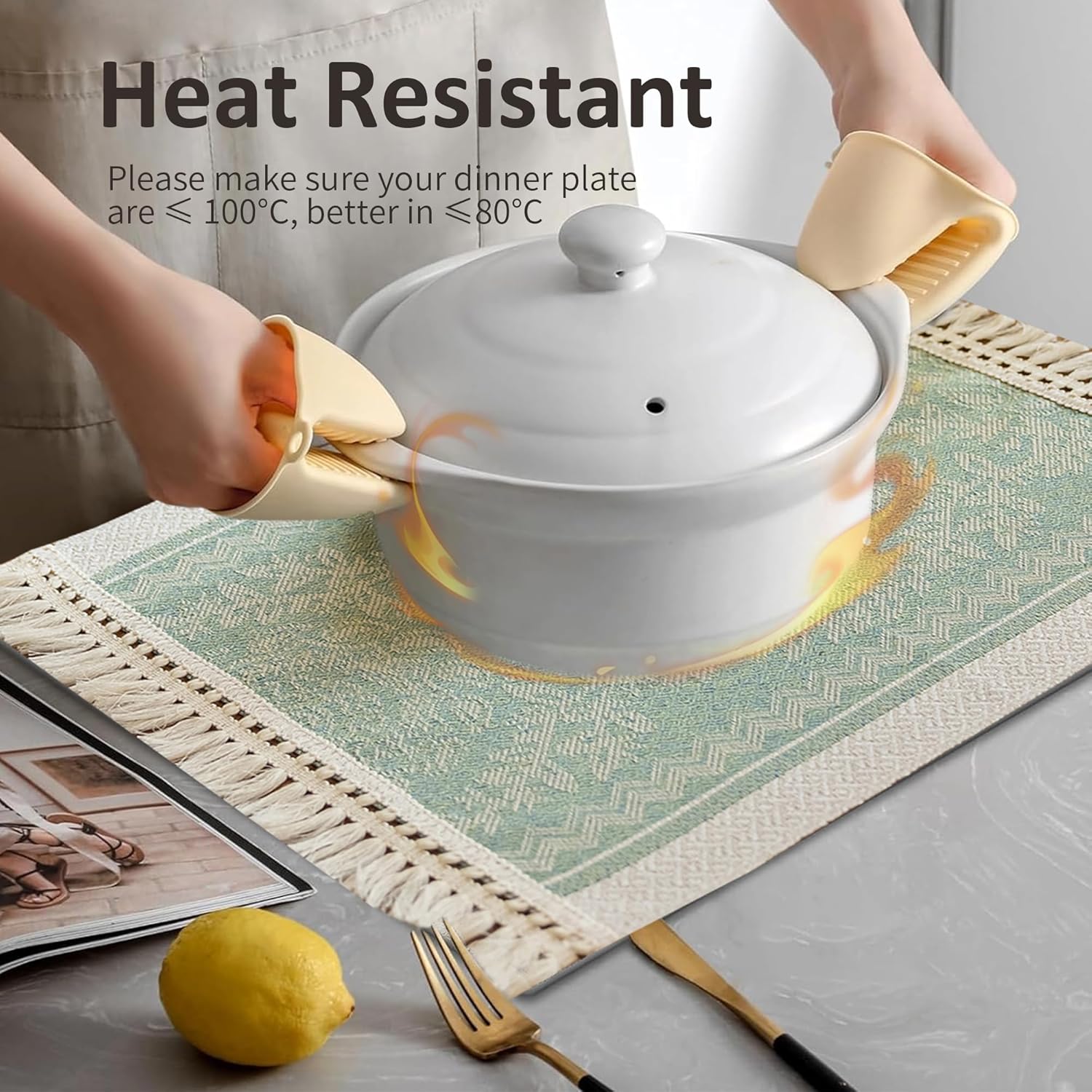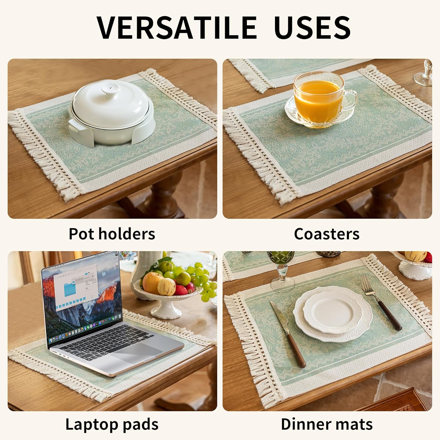 • Washing instructions: Farmhouse placemats hand wash with cold water, lay flat in a cool place to dry.Kitchen placemats avoid bleaching and ironing to maintain the color and tassel shape