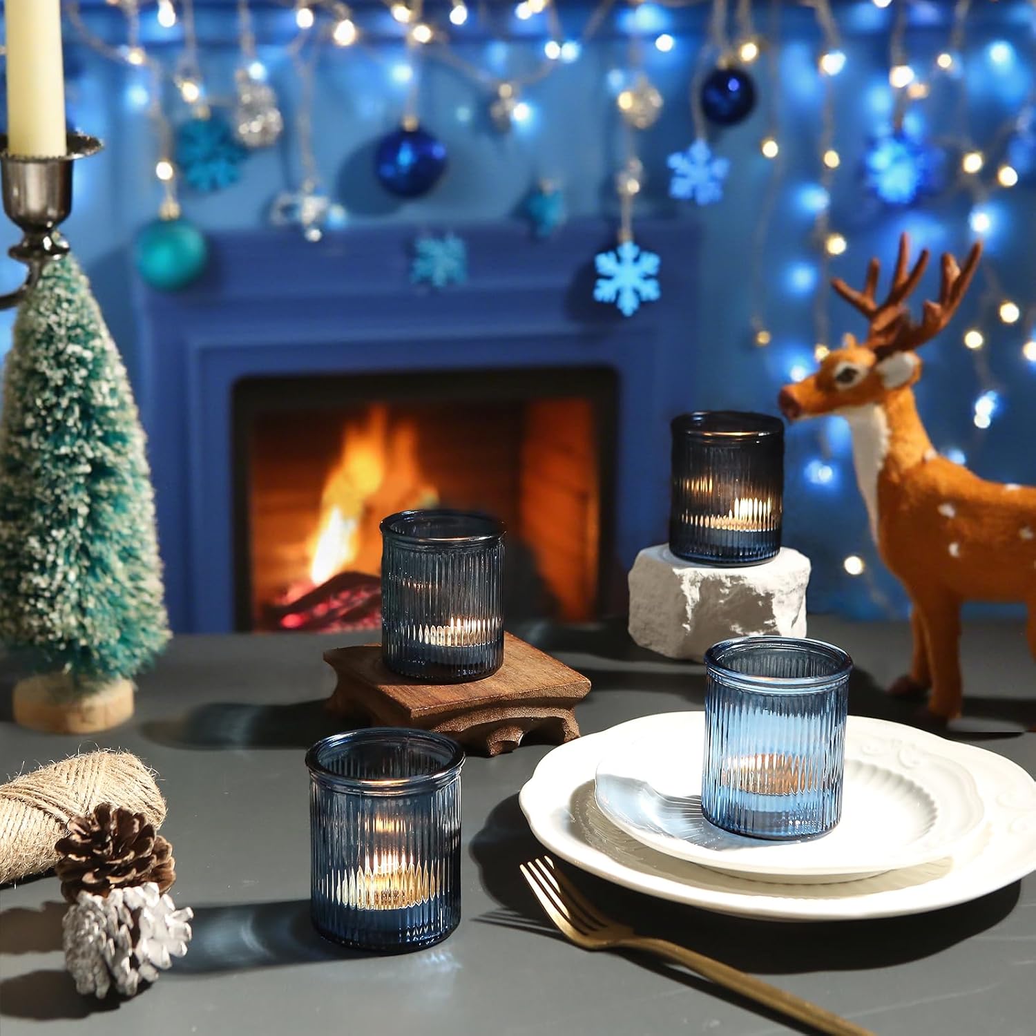 36pcs Votive Candle Holders, Blue Glass Votives Ribbed Tea Light Candle Holders Bulk for Baby Shower, Tea Lights Candles Holder for Home Party Wedding Decoration & Gift