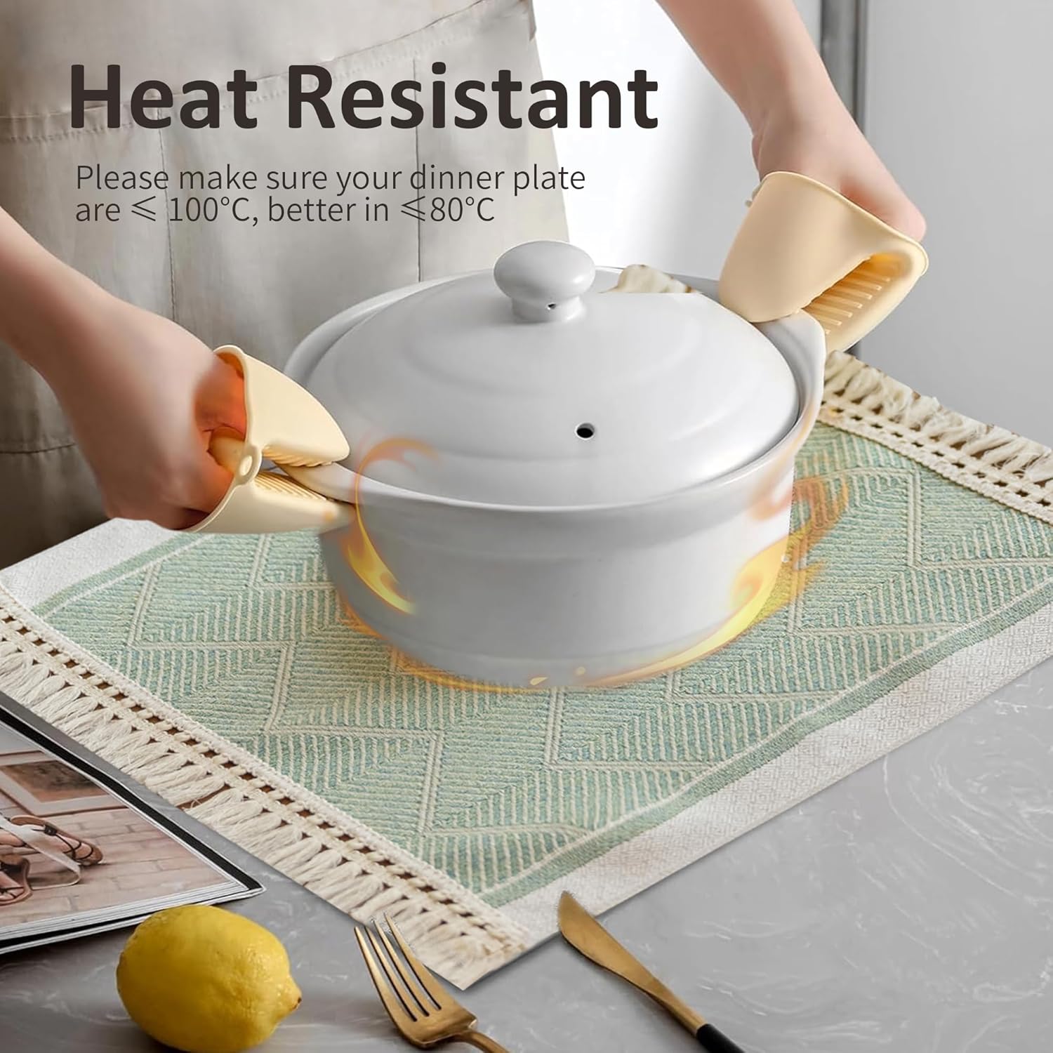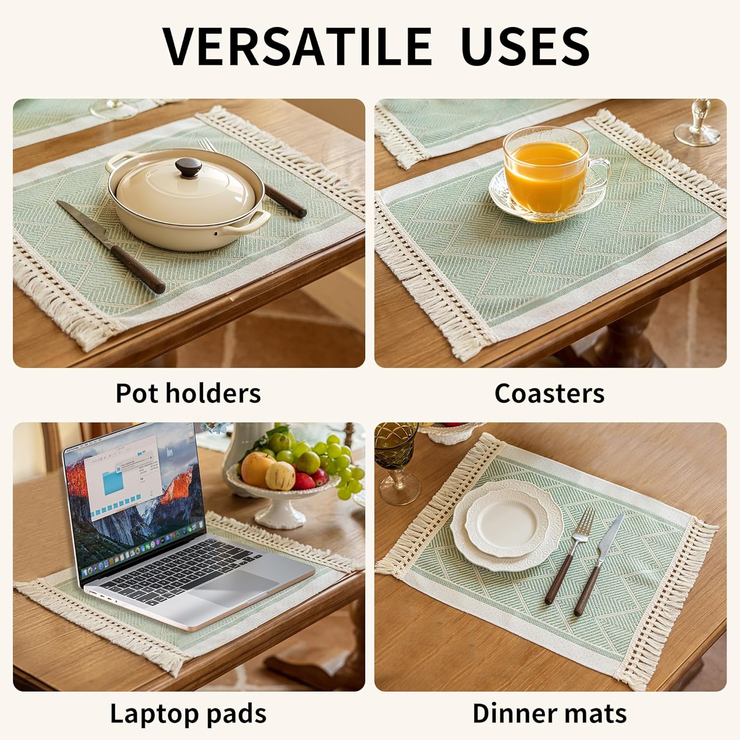 • Washing instructions: Farmhouse placemats hand wash with cold water, lay flat in a cool place to dry.Kitchen placemats avoid bleaching and ironing to maintain the color and tassel shape