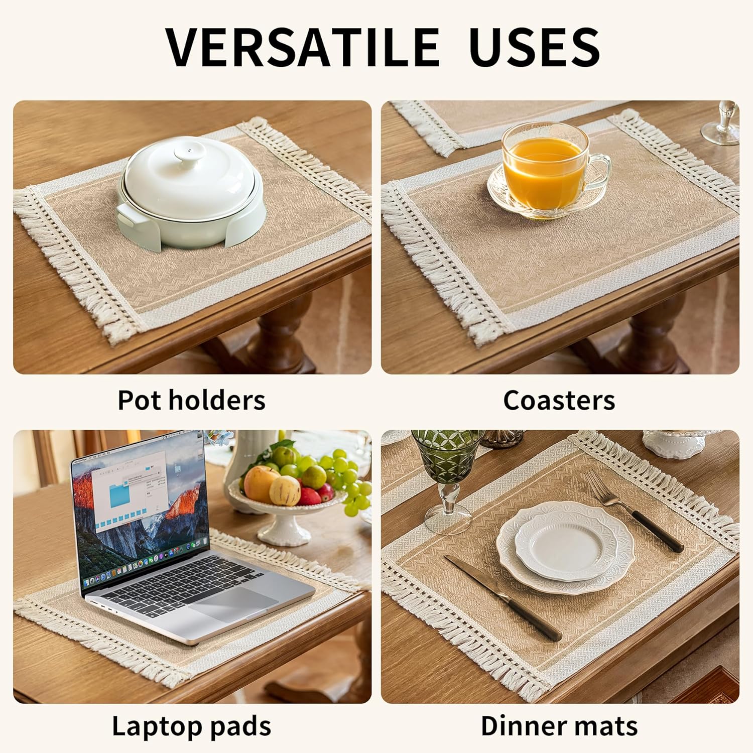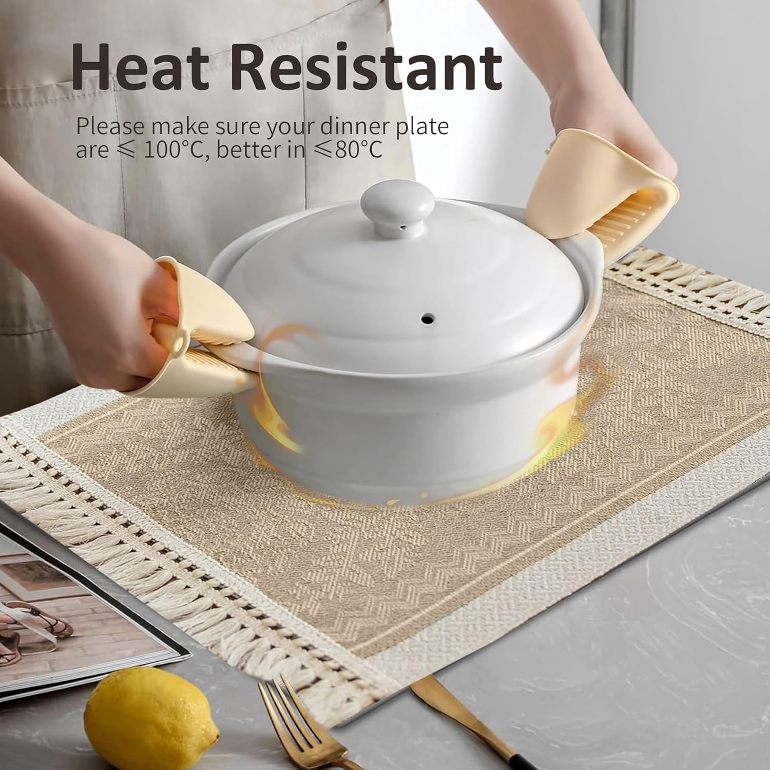 • Washing instructions: Farmhouse placemats hand wash with cold water, lay flat in a cool place to dry.Kitchen placemats avoid bleaching and ironing to maintain the color and tassel shape