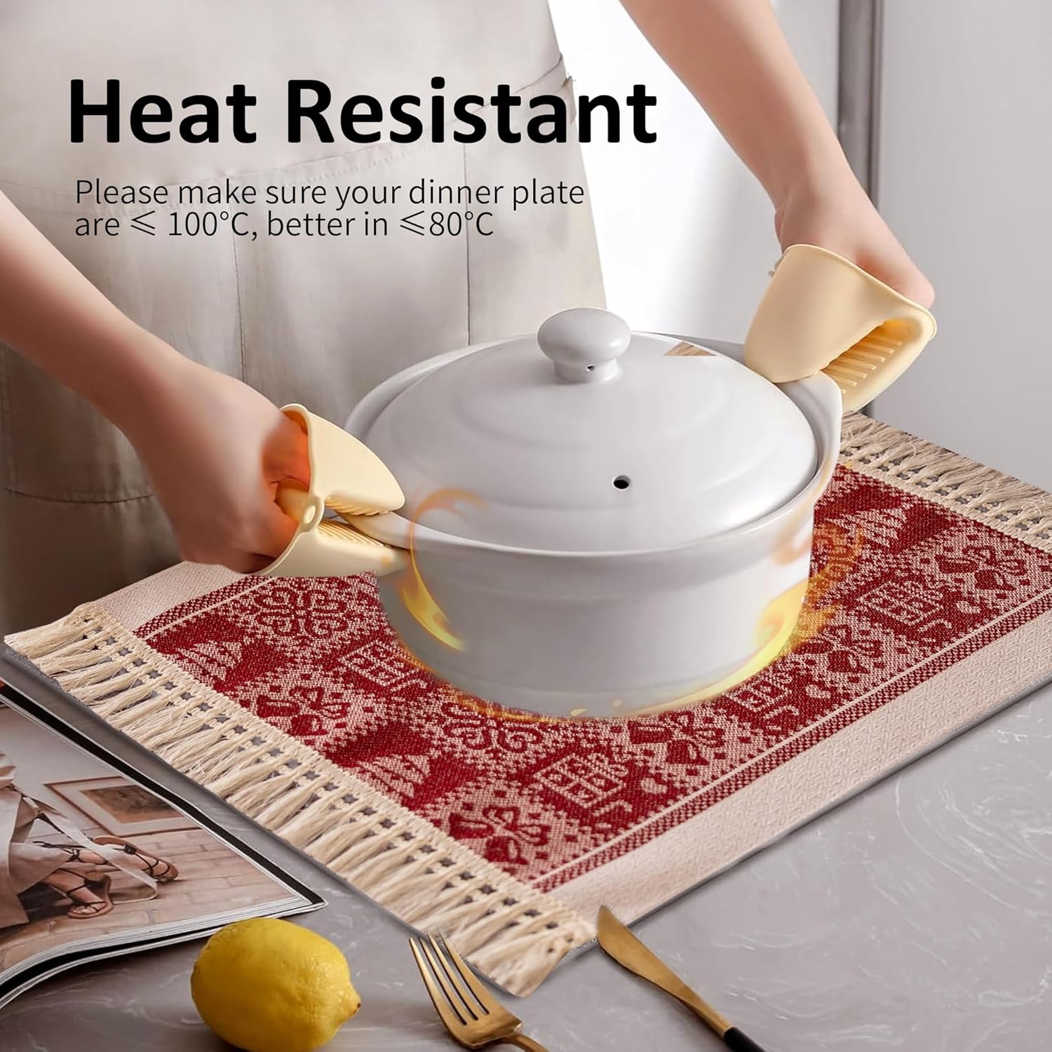 • Washing instructions: Farmhouse placemats hand wash with cold water, lay flat in a cool place to dry.Kitchen placemats avoid bleaching and ironing to maintain the color and tassel shape