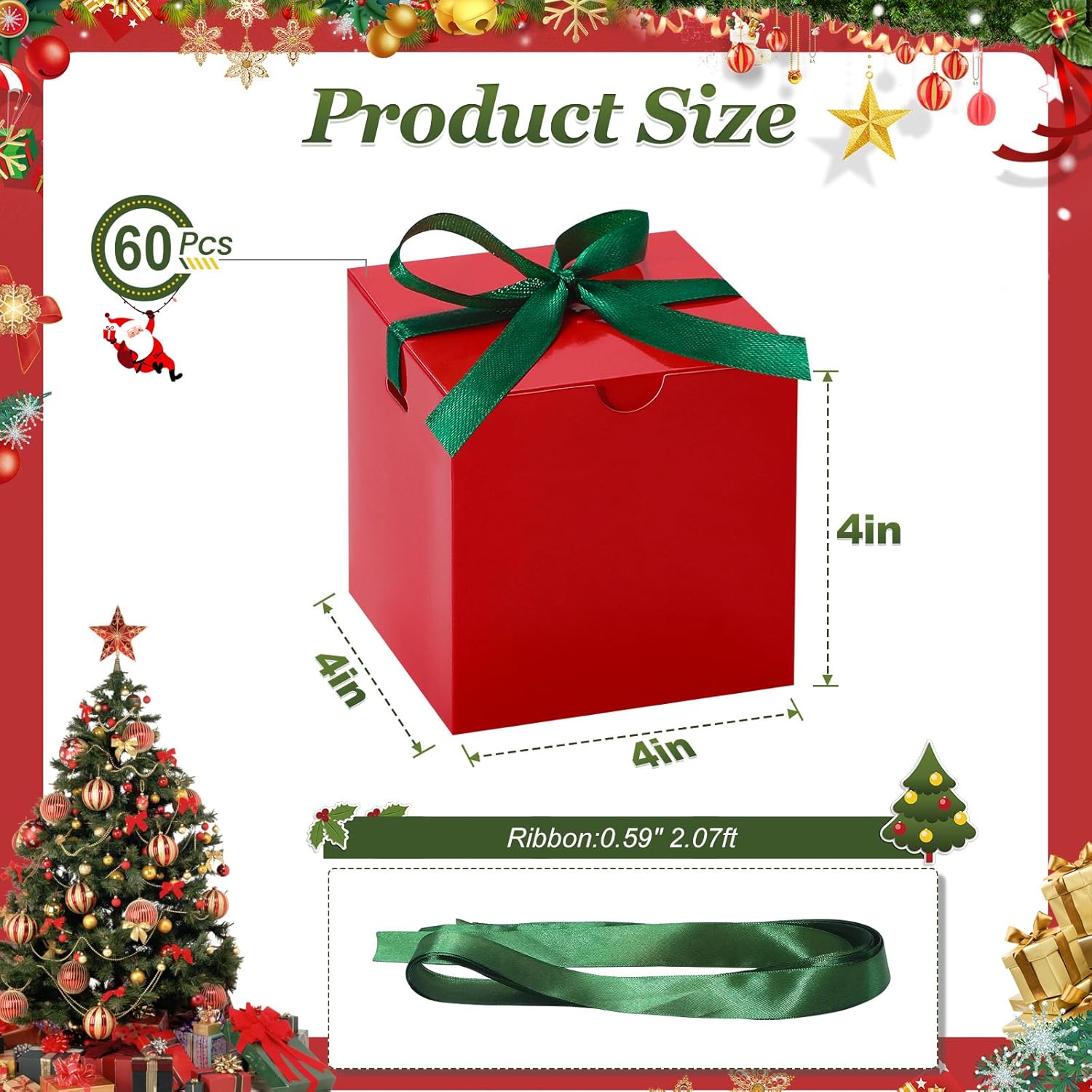 DOYIDE Small Gift Boxes, 60 Pcs 4x4x4 Inch Red Elegant Paper Box with Ribbons, Party Favor Boxes for Candy Cupcake Christmas Wedding Baby Shower Bridesmaids Birthday