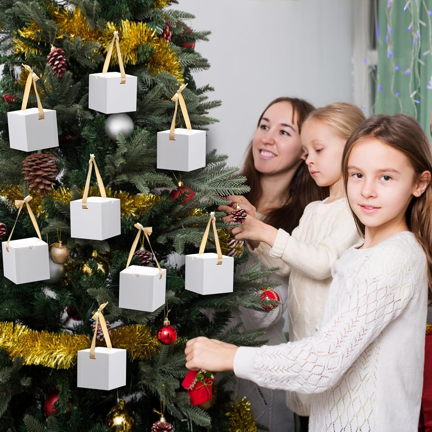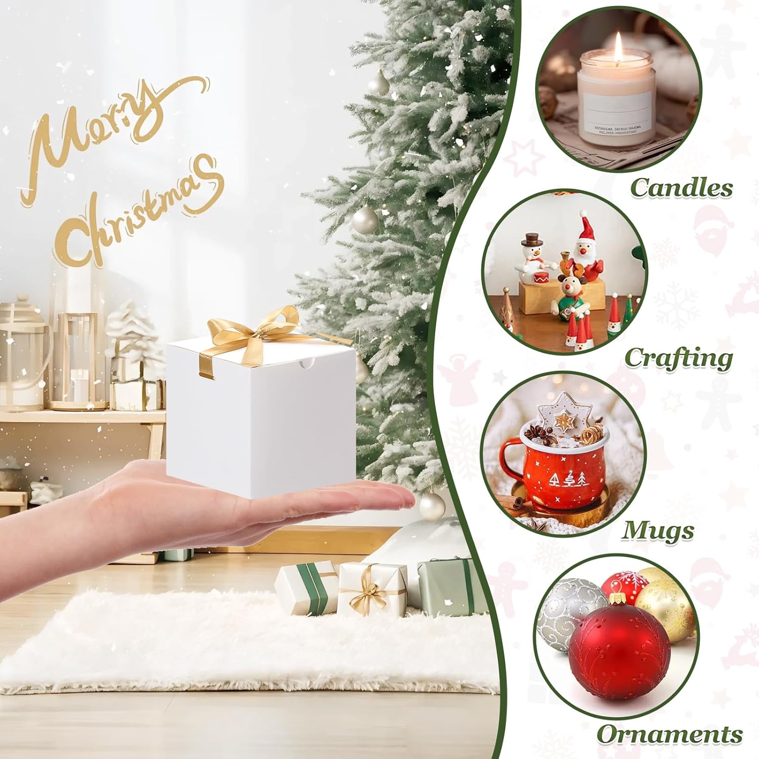 DOYIDE Small Gift Boxes, 60 Pcs 4x4x4 Inch White Elegant Paper Box with Ribbons, Party Favor Boxes for Candy Cupcake Christmas Wedding Baby Shower Bridesmaids Birthday