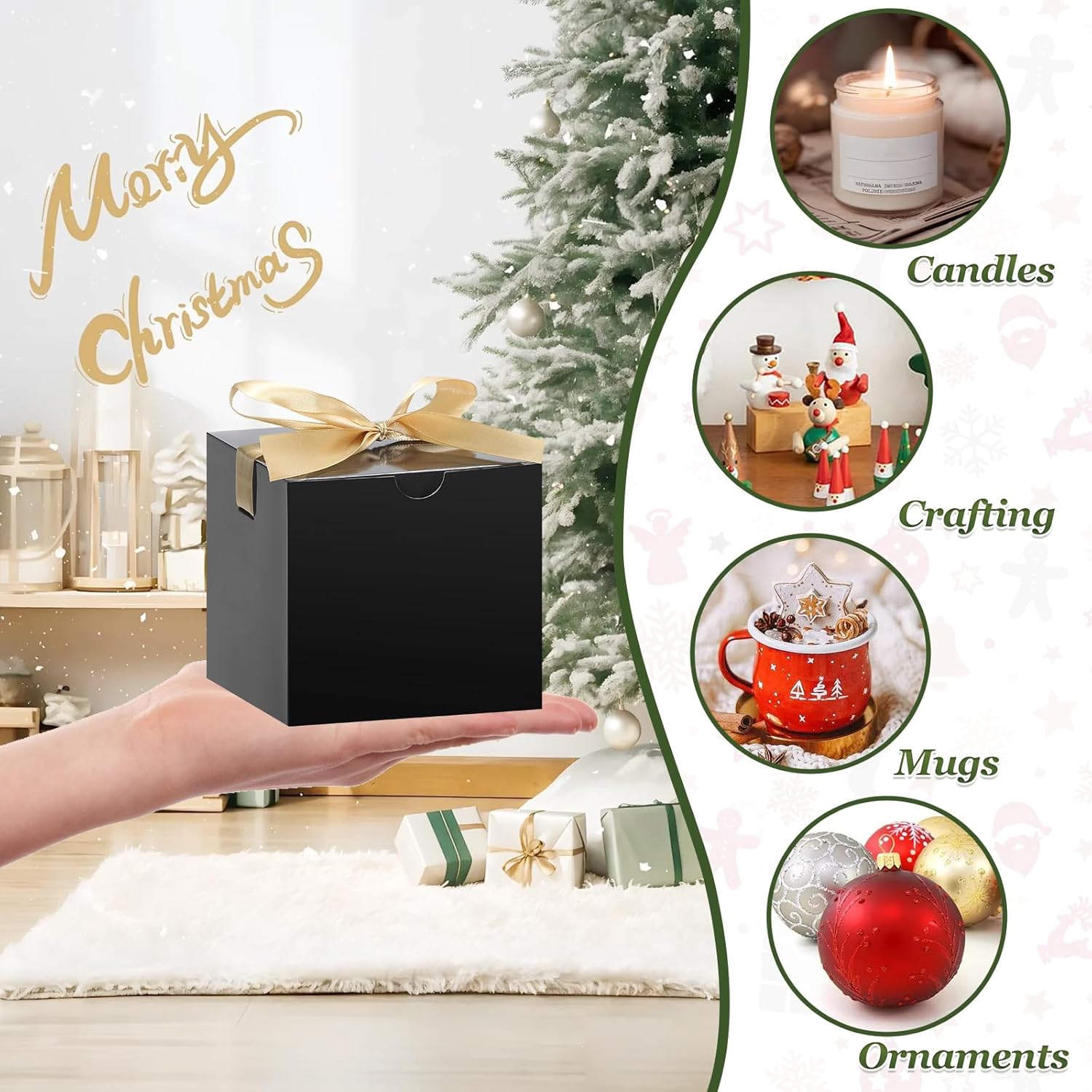 DOYIDE 20 Pack Small Gift Boxes, 6x6x6 Inch Black Elegant Paper Boxes with Ribbons, Christmas Gift Box Crafting, Wedding Party Favor, Cupcake, Candy, Bridesmaids Proposal Box