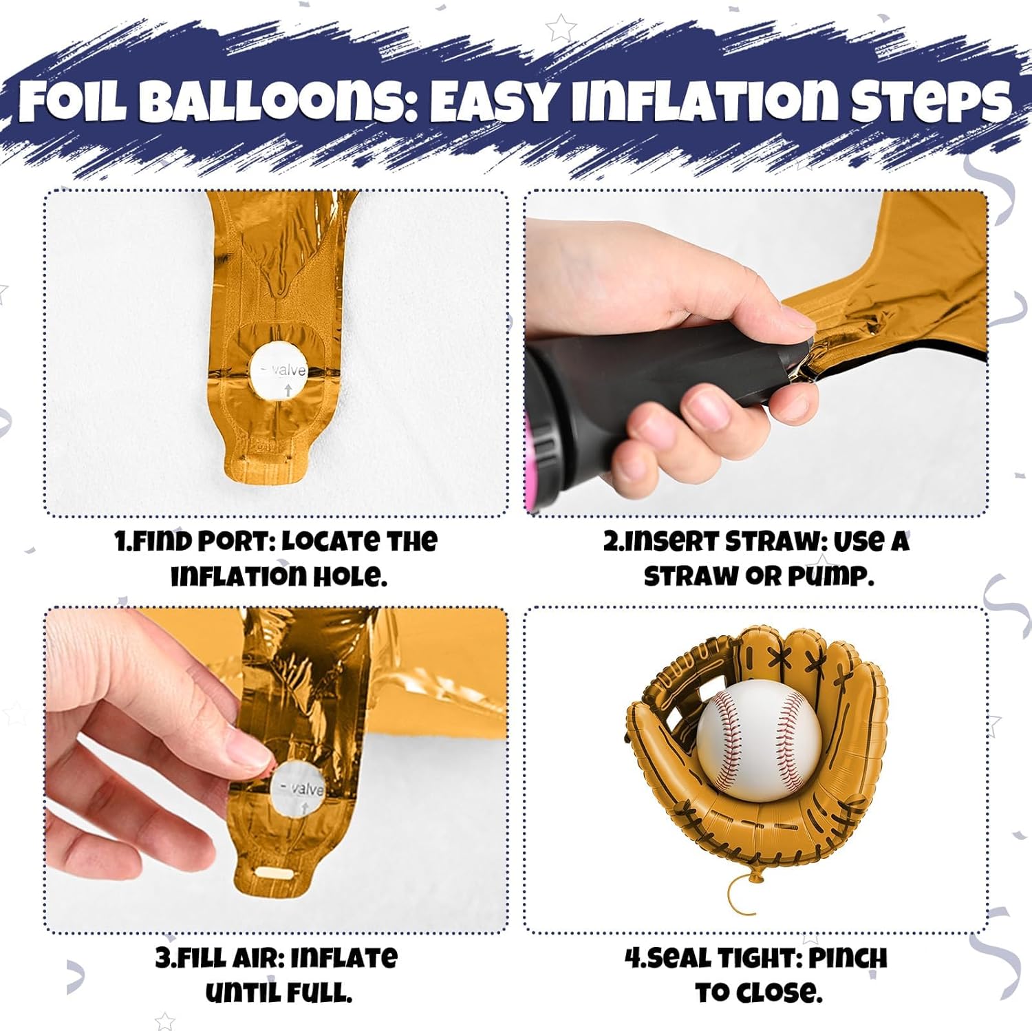 • 【Versatile for Many Occasions】Ideal for baseball birthday parties, team celebrations, boy first birthday decorations, rookie of the year events, and more. The glove and ball foil balloons add a fun sports touch, making your party unique and memorable.