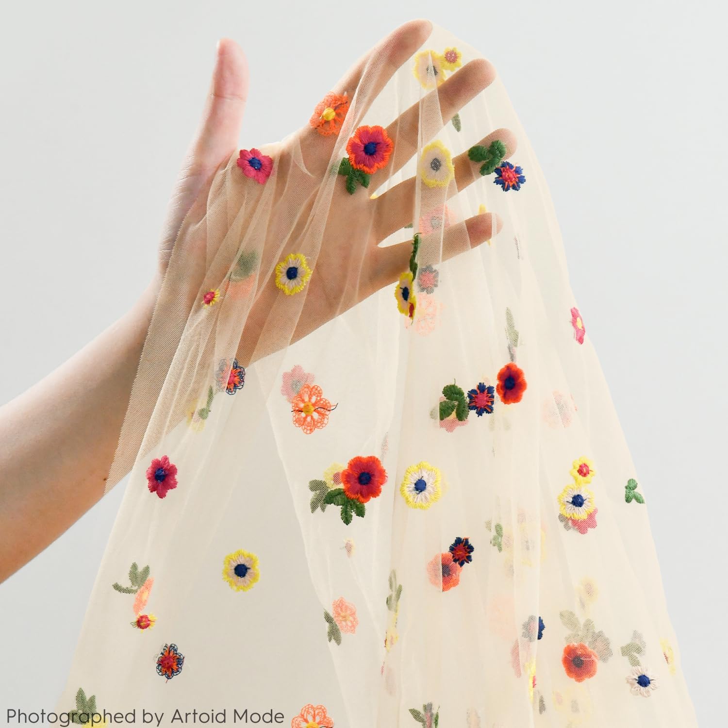 Artoid Mode 6PCS Champagne Embroidery Daisy Gauze Table Runner 120 Inch 10FT, Seasonal Sheer Kitchen Dining Holiday Wedding Birthday Table Decor for Home Party
