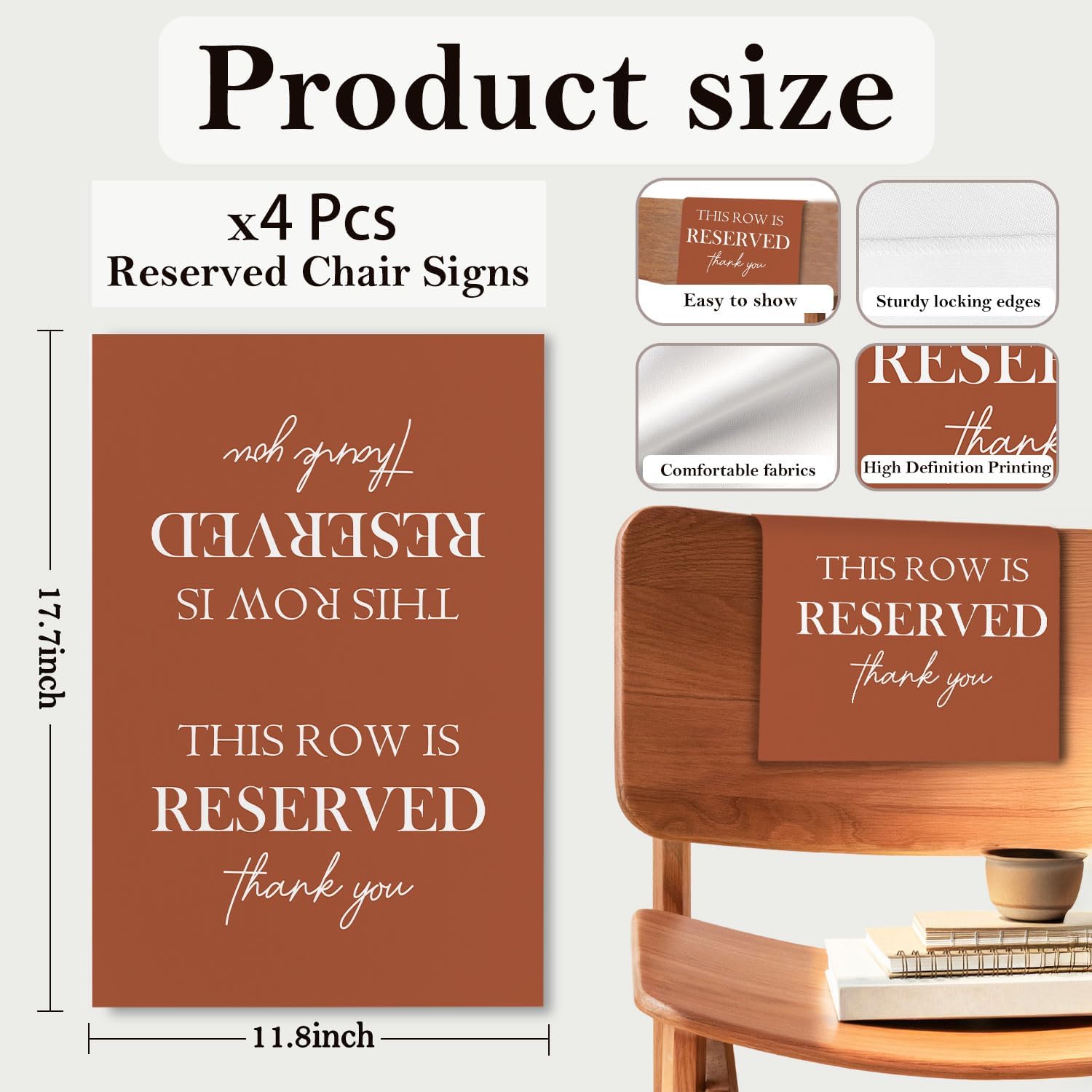 • Universal Size: Each reserved seat sign measures approx. 30 x 45 cm / 11.81 x 17.72 inches, suitable for most standard chairs, pews, or benches. The large, clear lettering ensures your message is easily seen by guests from a distance.
