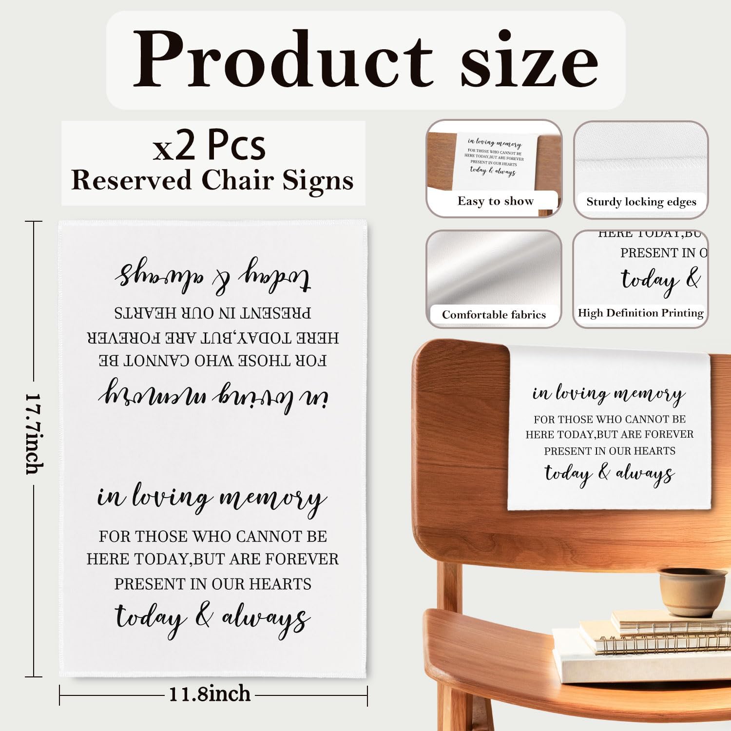 • Assorted Themes Available: Each cloth in the set features different printed messages or designs tailored for various occasions. From weddings and memorial services to church events and celebrations, these versatile signs help you reserve seats with style and clarity.