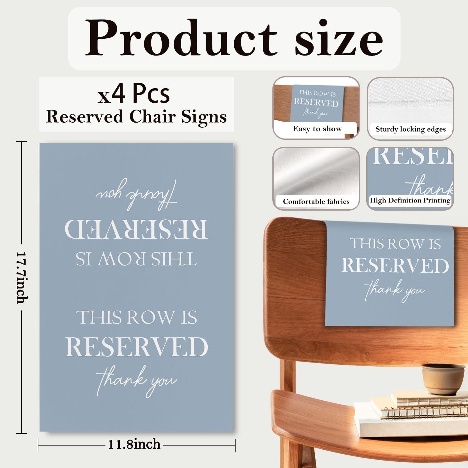 Reserved Seating Chair Signs, This Row Is Reserved Pew Cloths Seating Placeholder for Church Pews, Dusty Blue Wedding Decorations for Reception Parties Event (Dusty Blue, 4 PCS)