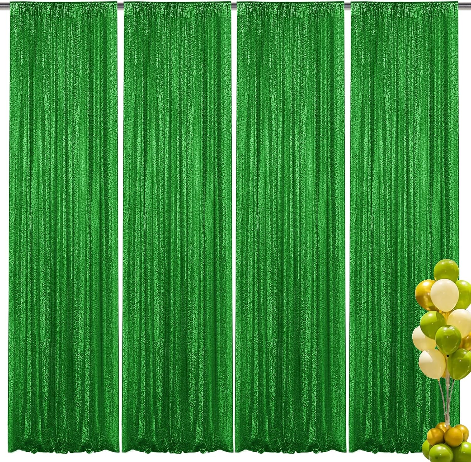 Green Sequin Backdrop Curtain 4 Pieces 2FTx8FT Glitter Photography Backdrop for Party Wedding Birthday Christmas Decorations