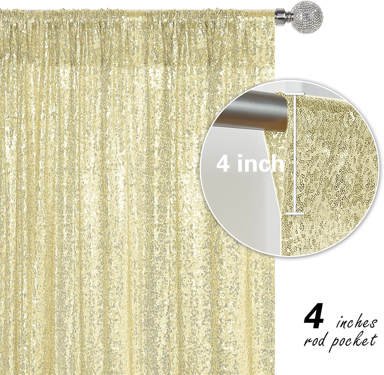 Champagne Sequin Backdrop Curtain 2 Pieces 2FTx8FT Glitter Photography Backdrop for Party Wedding Birthday Christmas Decorations