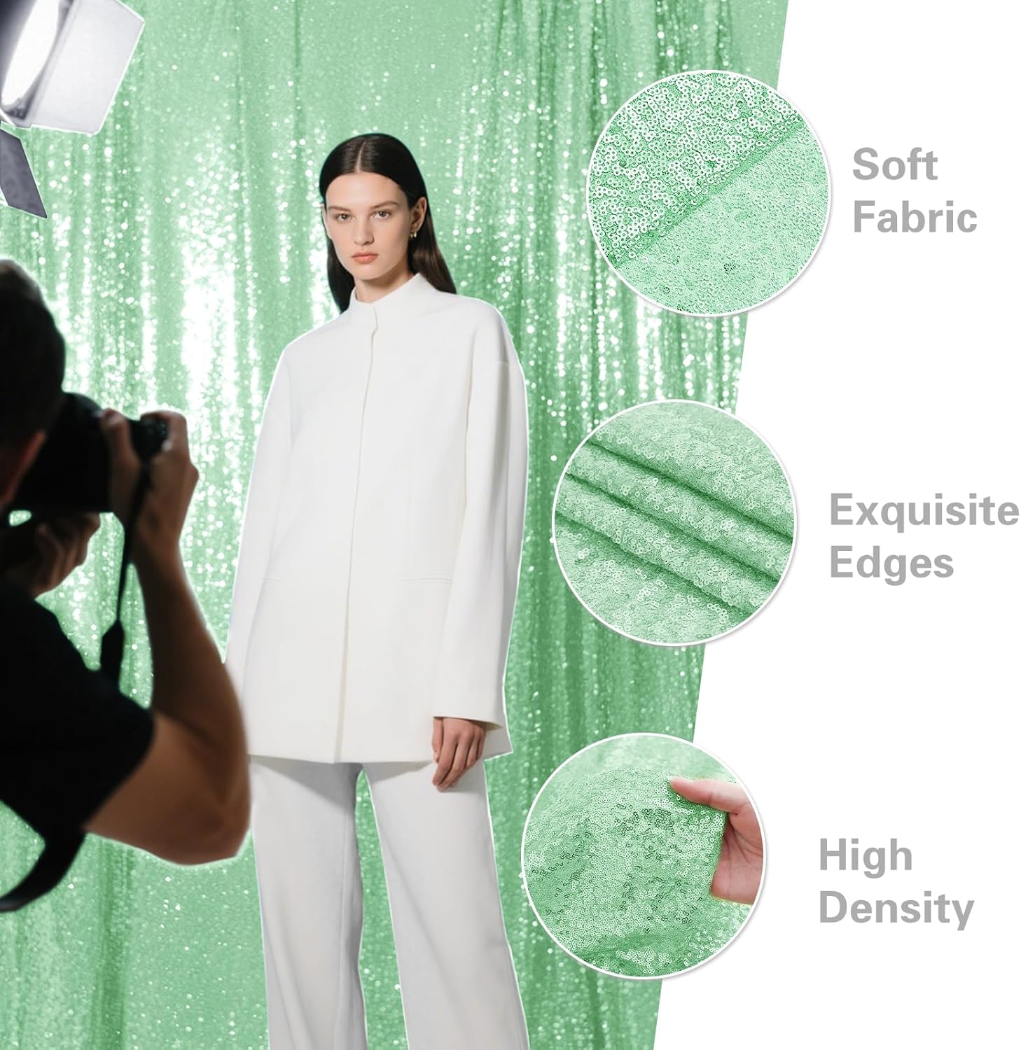 Mint Green Sequin Backdrop Curtain 2 Pieces 2FTx8FT Glitter Photography Backdrop for Party Wedding Birthday Christmas Decorations