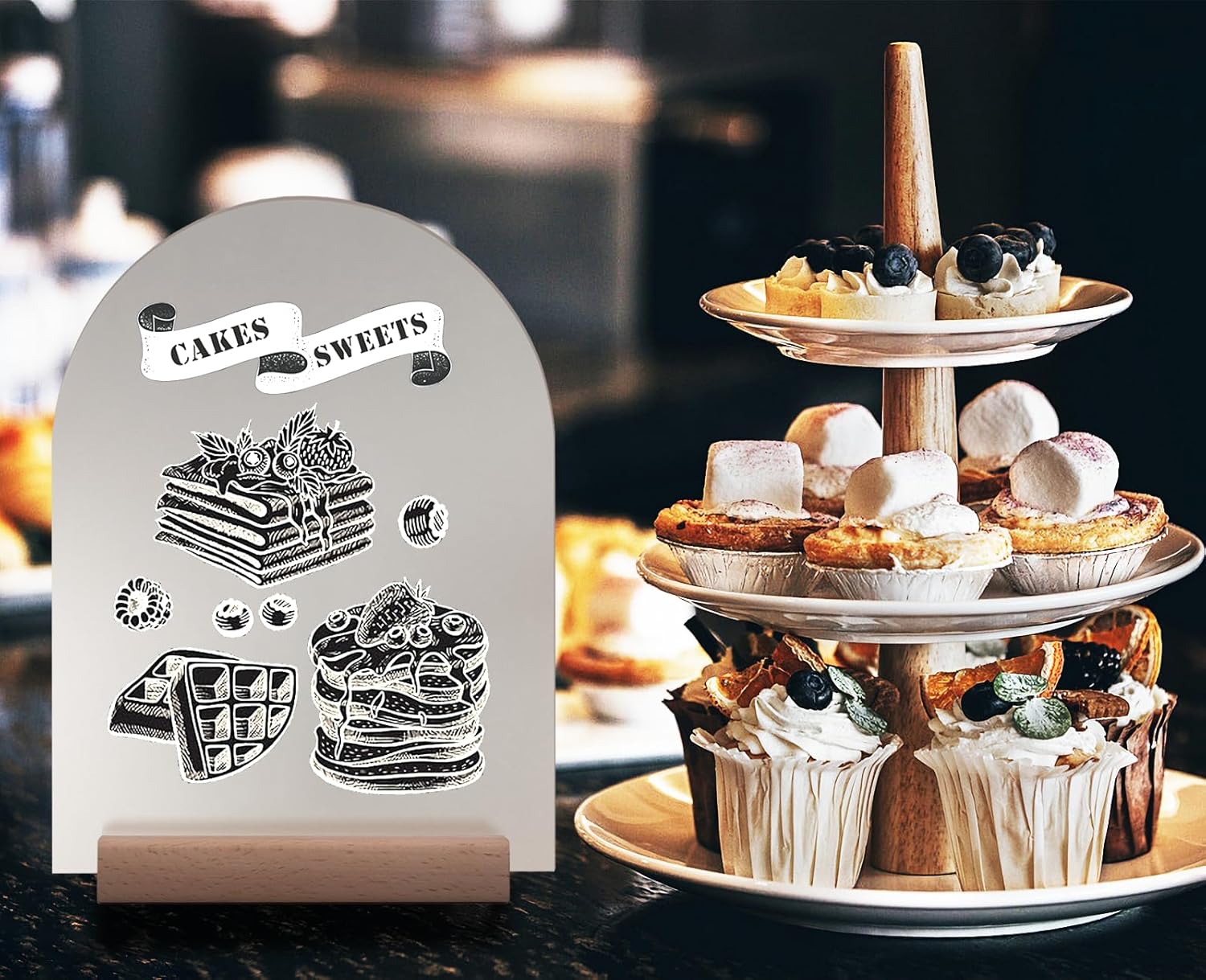 • DELICATE DESIGN - Glass-look acrylic is all the rage! Our frosted arch-shaped acrylic blanks paired with stands add a stylish and modern look to your event. The combination of the sturdy, wide wooden base and the acrylic blank ensures that any table number, card, or photo you create and display will always be upright during your event. They form the perfect foundation for creating gift table signs, picture displays, or wedding card holders.