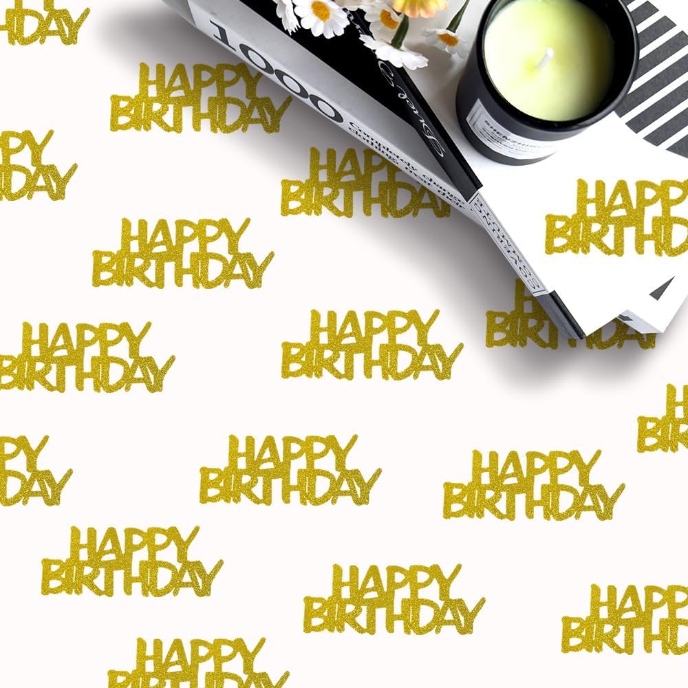 Gold Happy Birthday Confetti For Table - Paper Birthday Party Decorations For Men Women Boys Girls, Table Sprinkling Scatter Decoration Party Supplies