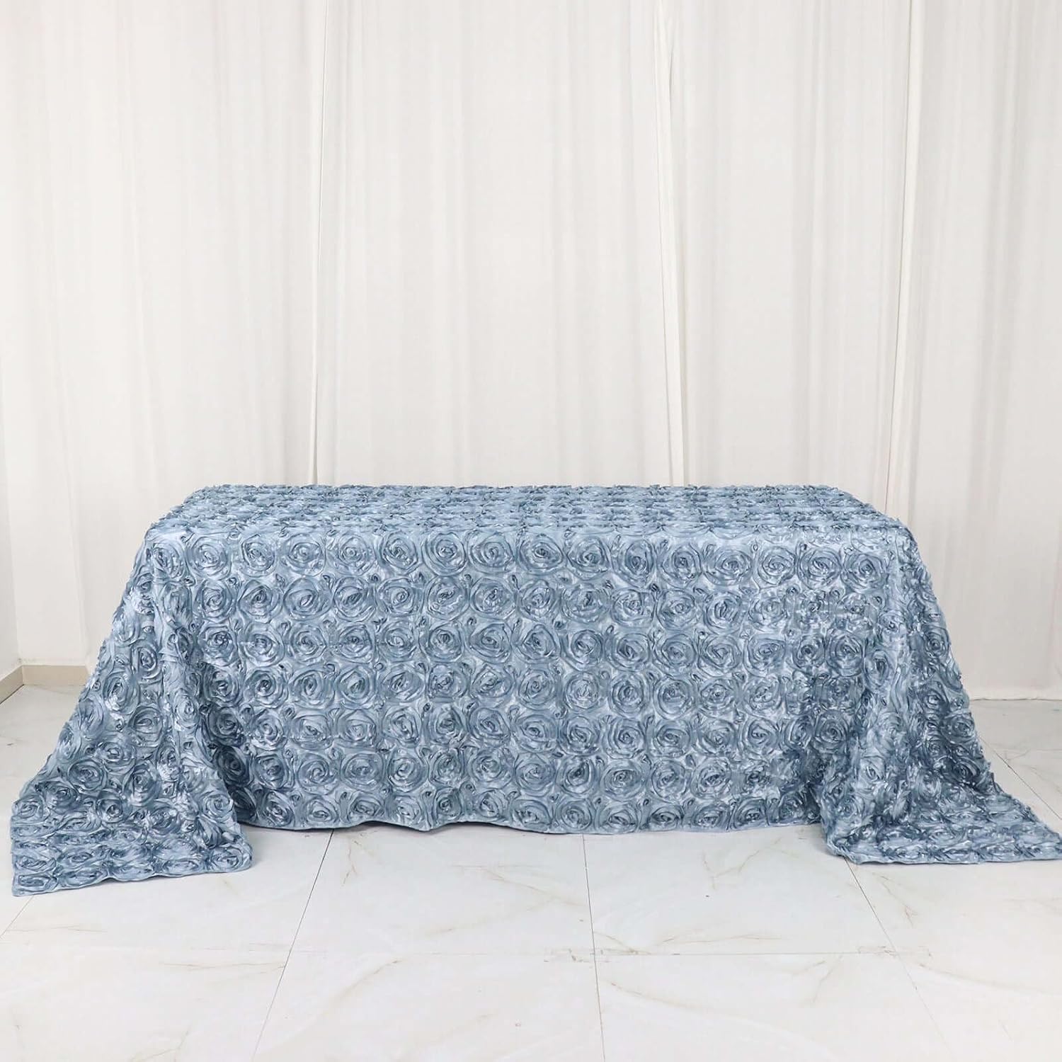 Efavormart 90"X132" Dusty Blue Grandiose 3D Rosette Satin Rectangle Tablecloth for Wedding Party Event