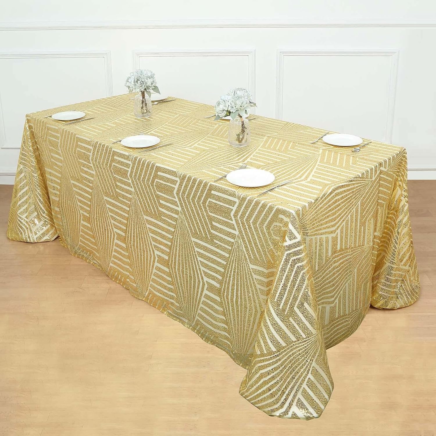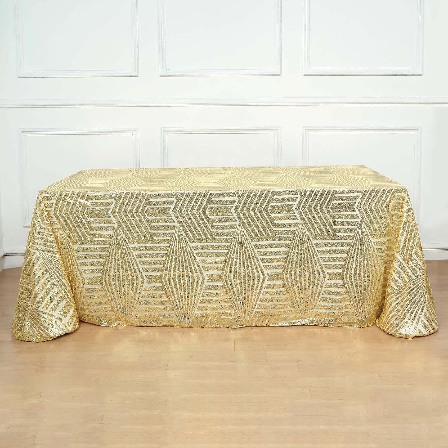 Efavormart 90"X132" Gold Sparkly Sequin Geometric Tulle Rectangular Tablecloth