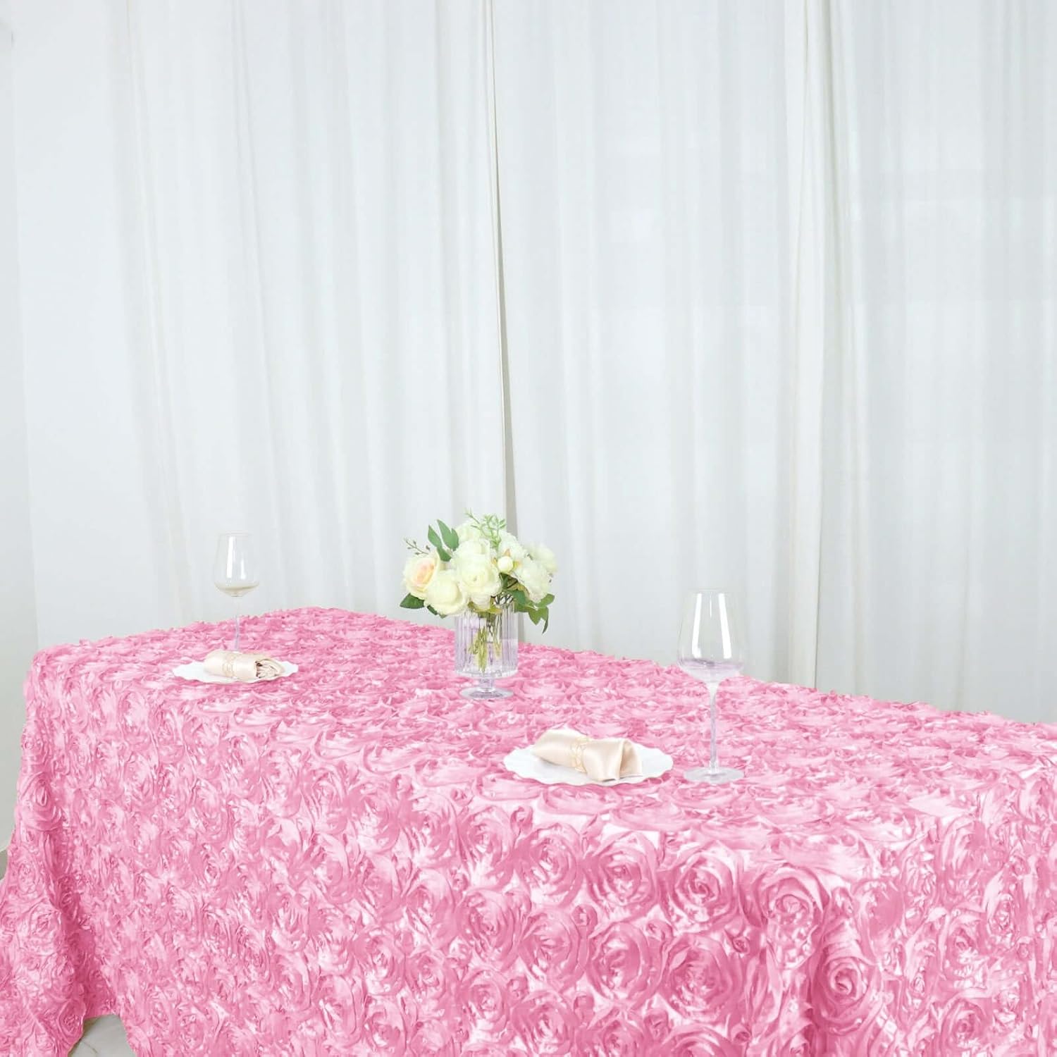 Efavormart 90"x132" Wholesale Rectangle Table Cover Pink Grandiose Rosette 3D Satin Tablecloth for Wedding Party Event Decoration