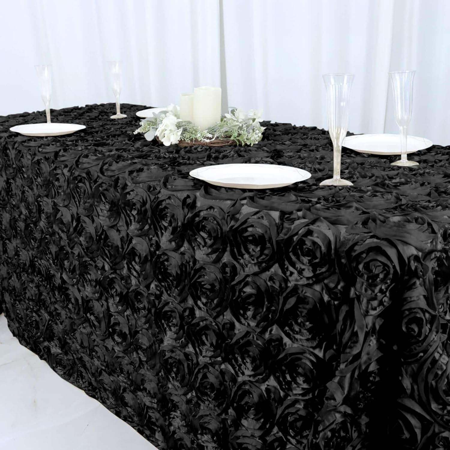 Efavormart 90"x132" Wholesale Rectangle Table Cover Black Grandiose Rosette 3D Satin Tablecloth for Wedding Party Event
