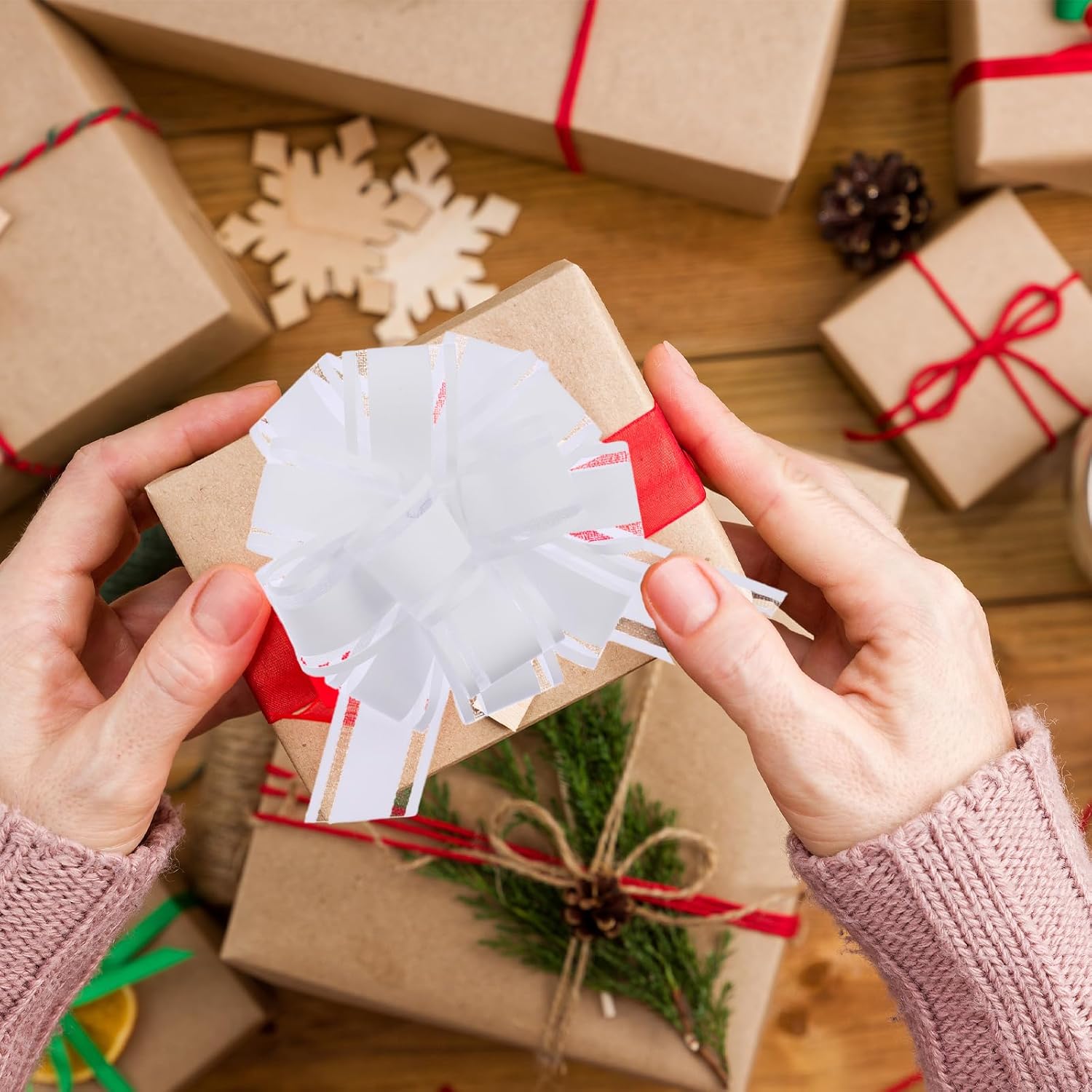 • Easy to install, just pull the 2 thin ribbons in reverse and the bow will automatically form. The Christmas gift bow is easy to install and fix, and the shape is not easy to spread. You can instantly get a beautiful ribbon flower, which can be used for gift packaging