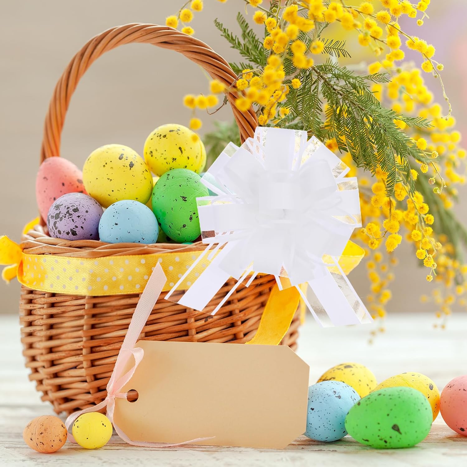 40 Pieces 6 Inches and 3 Inches Pull Bow Wrapping Pull Bow Ribbon Pull Bows for Wedding Baskets,Large Bows for Presents. (White)