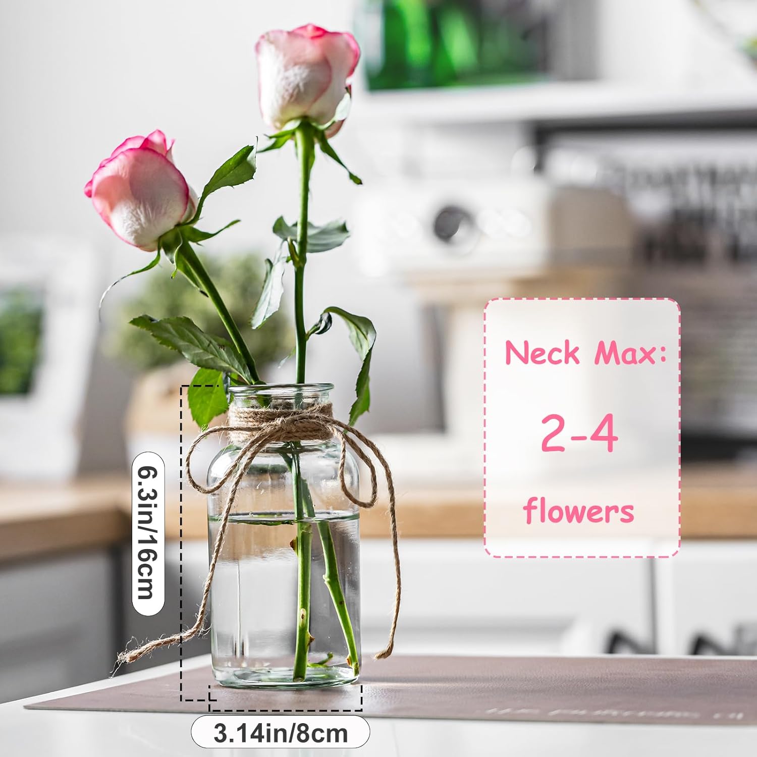 • 【Vintage Style】: The mason jar vase with rope design exude a delightful vintage farmhouse charm. The rustic rope detailing adds a touch of warmth and a unique aesthetic. Whether you're decorating for a wedding, sprucing up your home, or setting the table, these vintage vases blend seamlessly with a variety of decor themes, from classic to shabby chic.(Not Included Flowers)